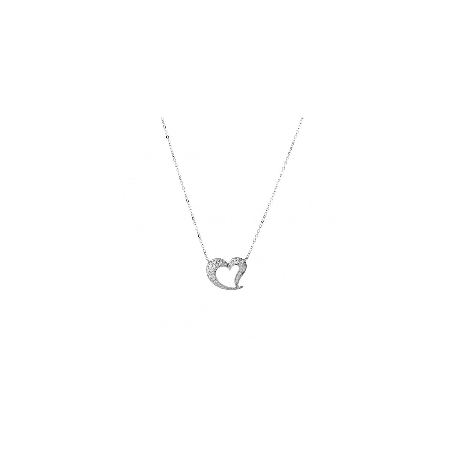Collana Donna in Argento 925 con ciondolo a Cuore Pavè