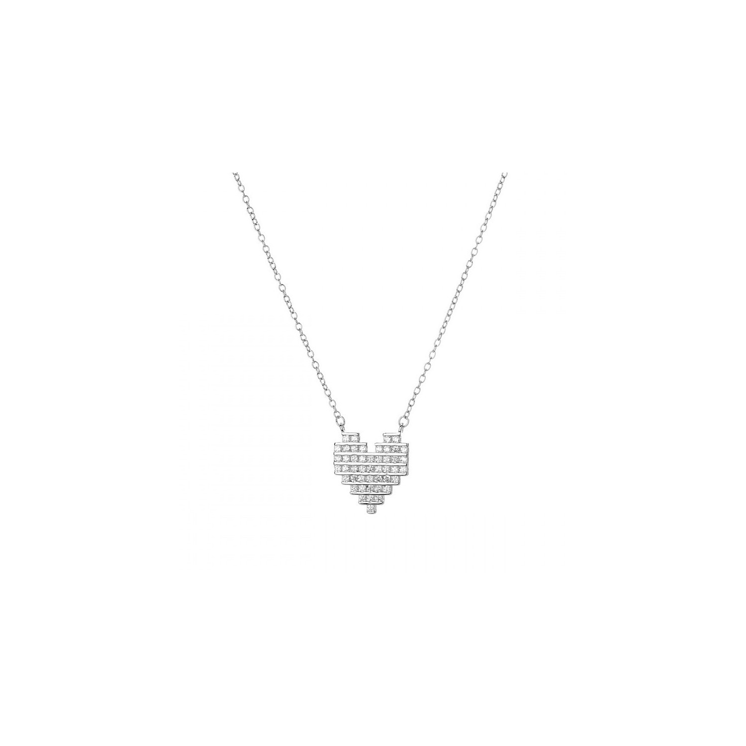 Collana Donna in Argento 925 ciondolo a Cuore Pavè cristalli