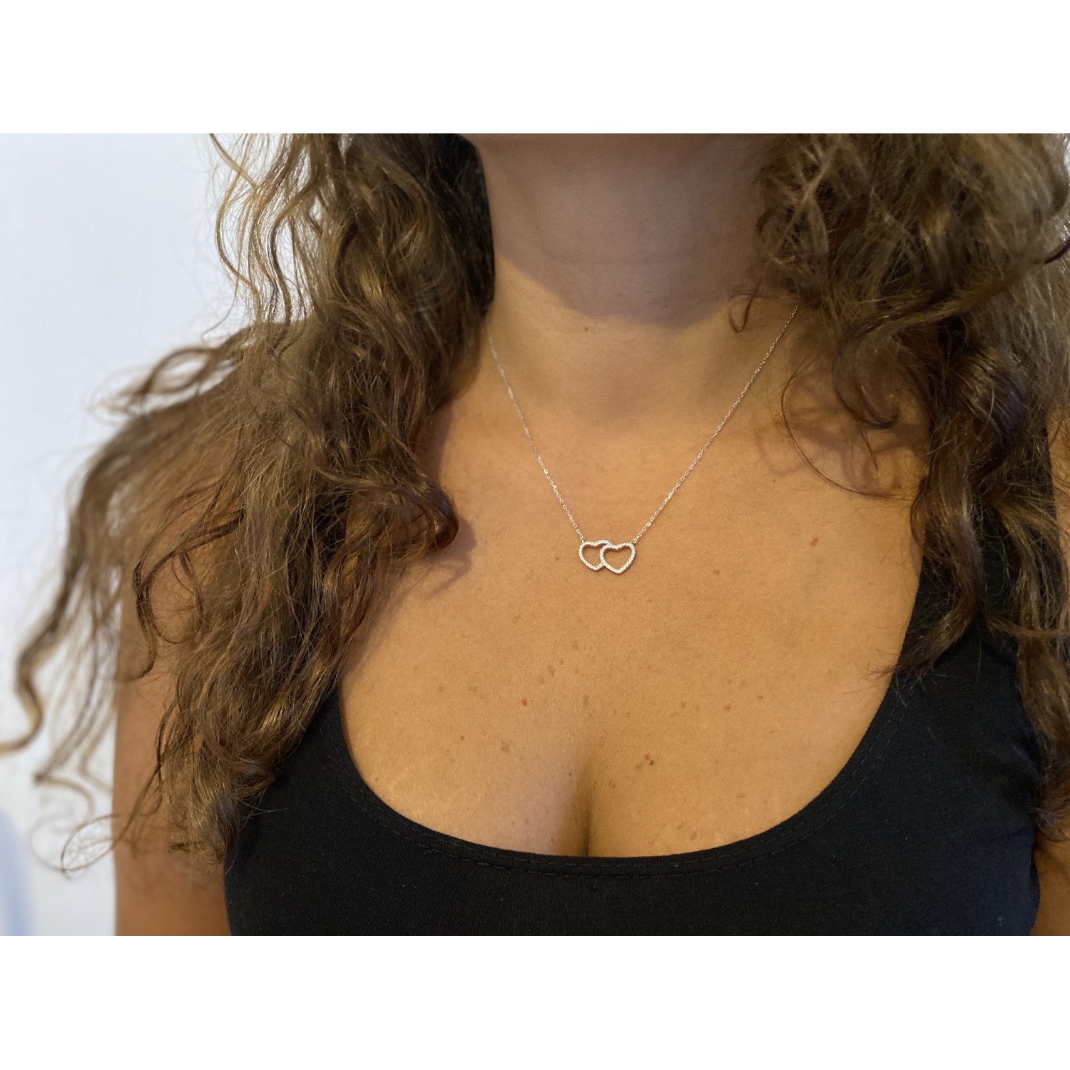 Collana Donna in Argento 925 Con Cuoricini Placcata oro Bianco