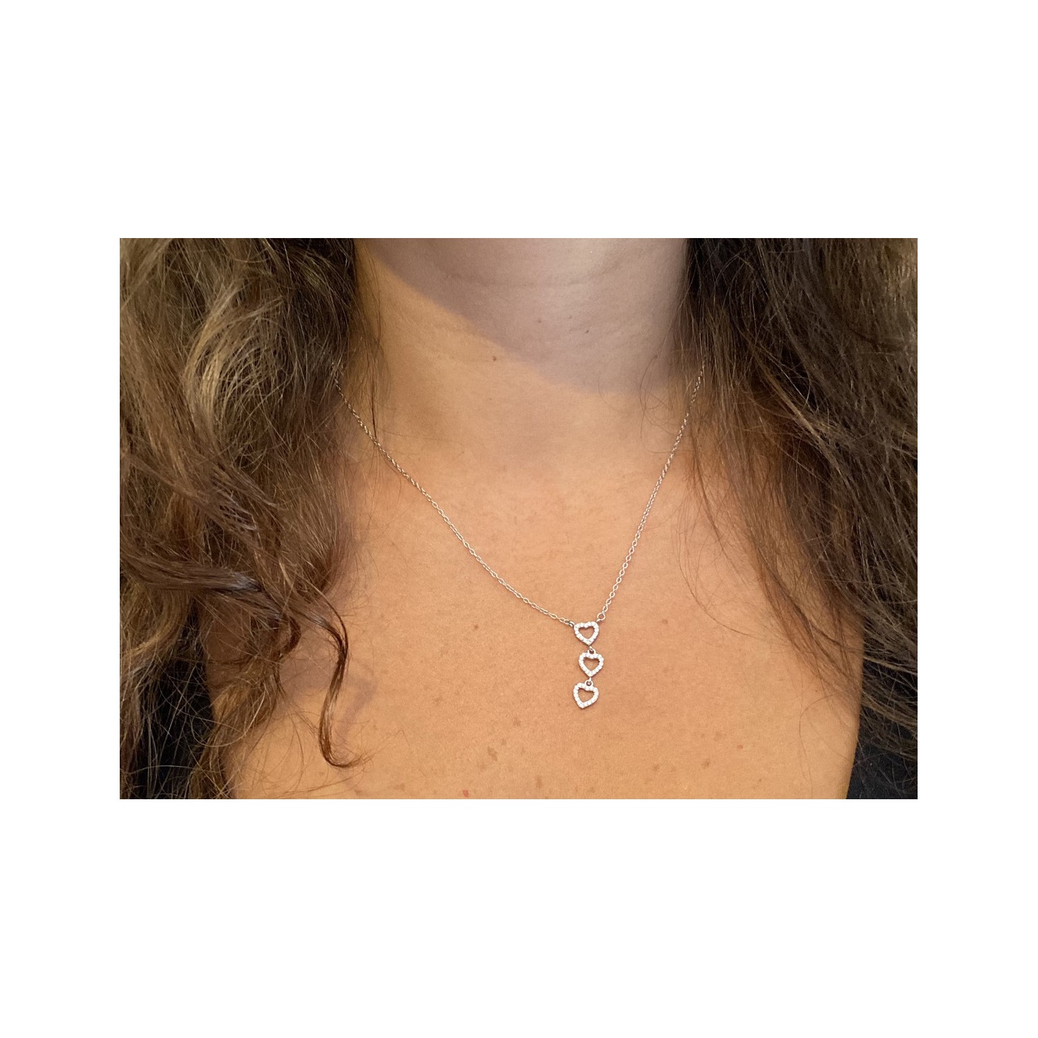 Collana Donna Cuoricini in Argento 925 Placcata oro Bianco