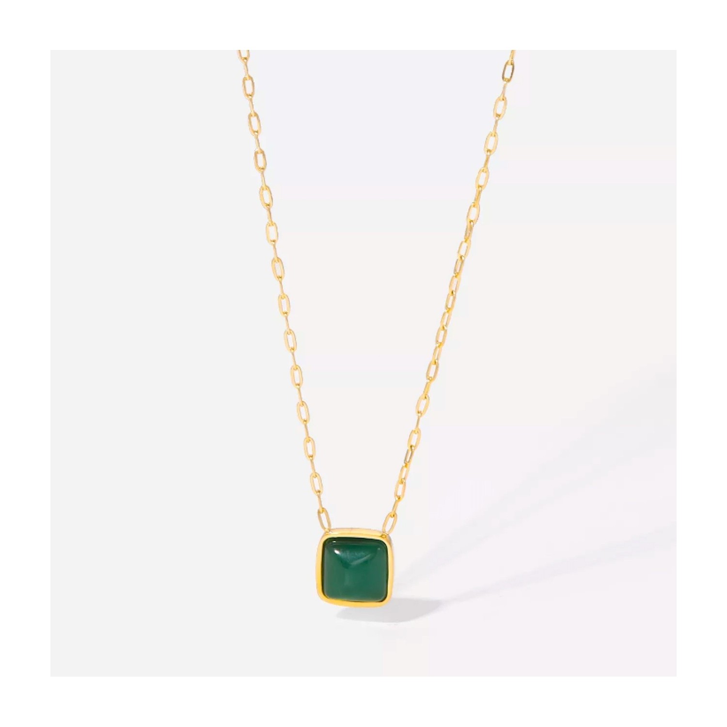 Collana Acciaio Donna Oro con Pietra Verde Catena semplice