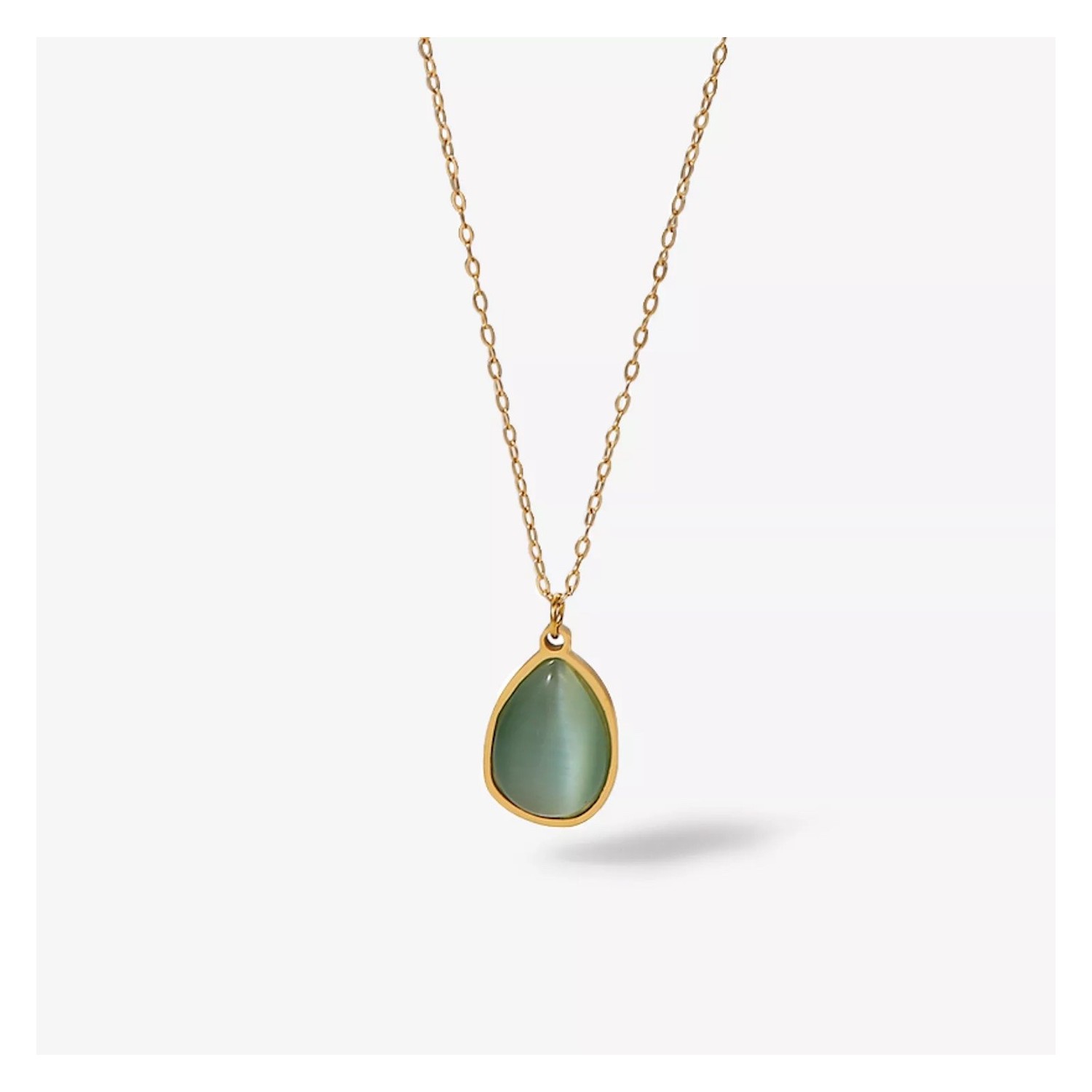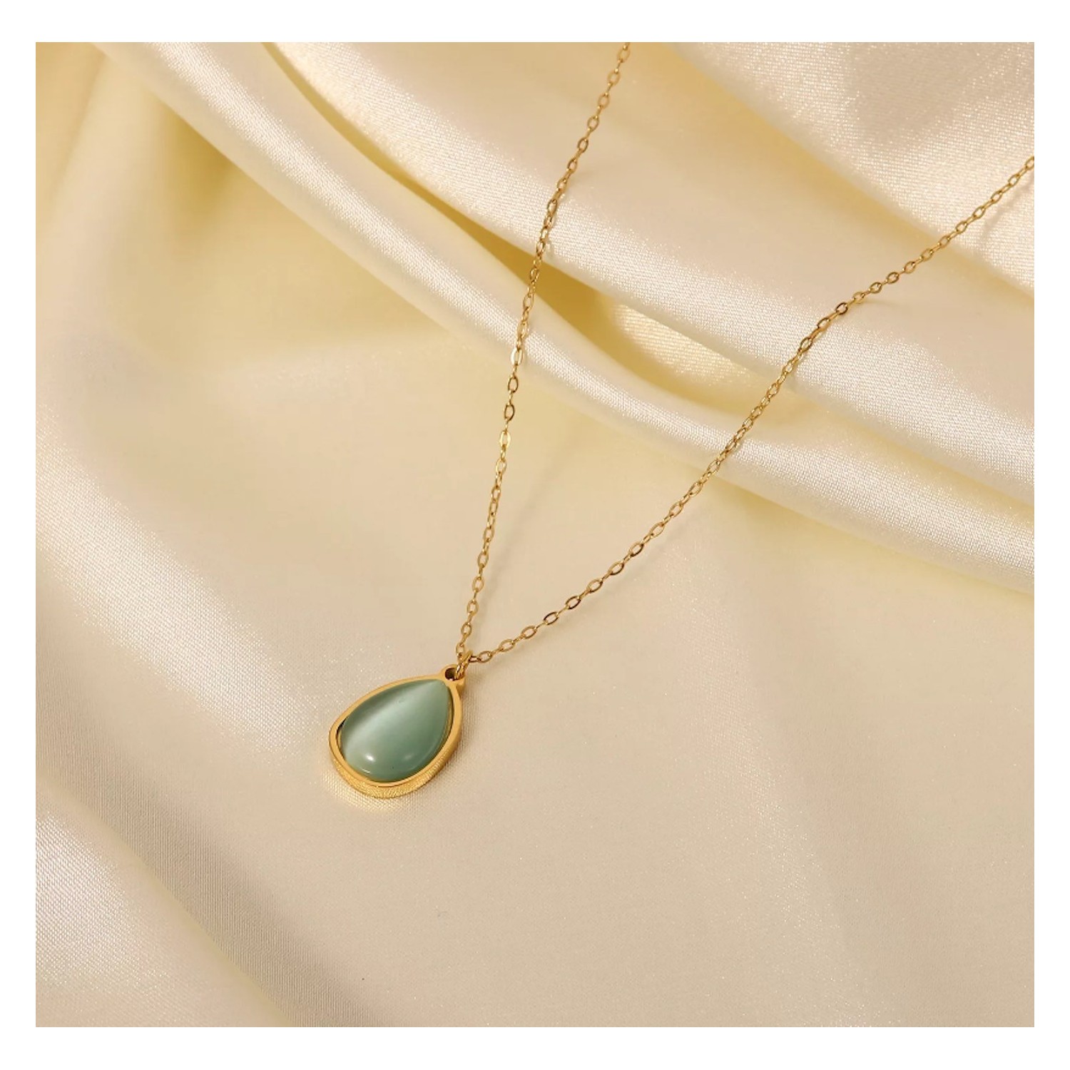 Collana Donna Oro Ciondolo Talismano Pietra Verde Acciaio