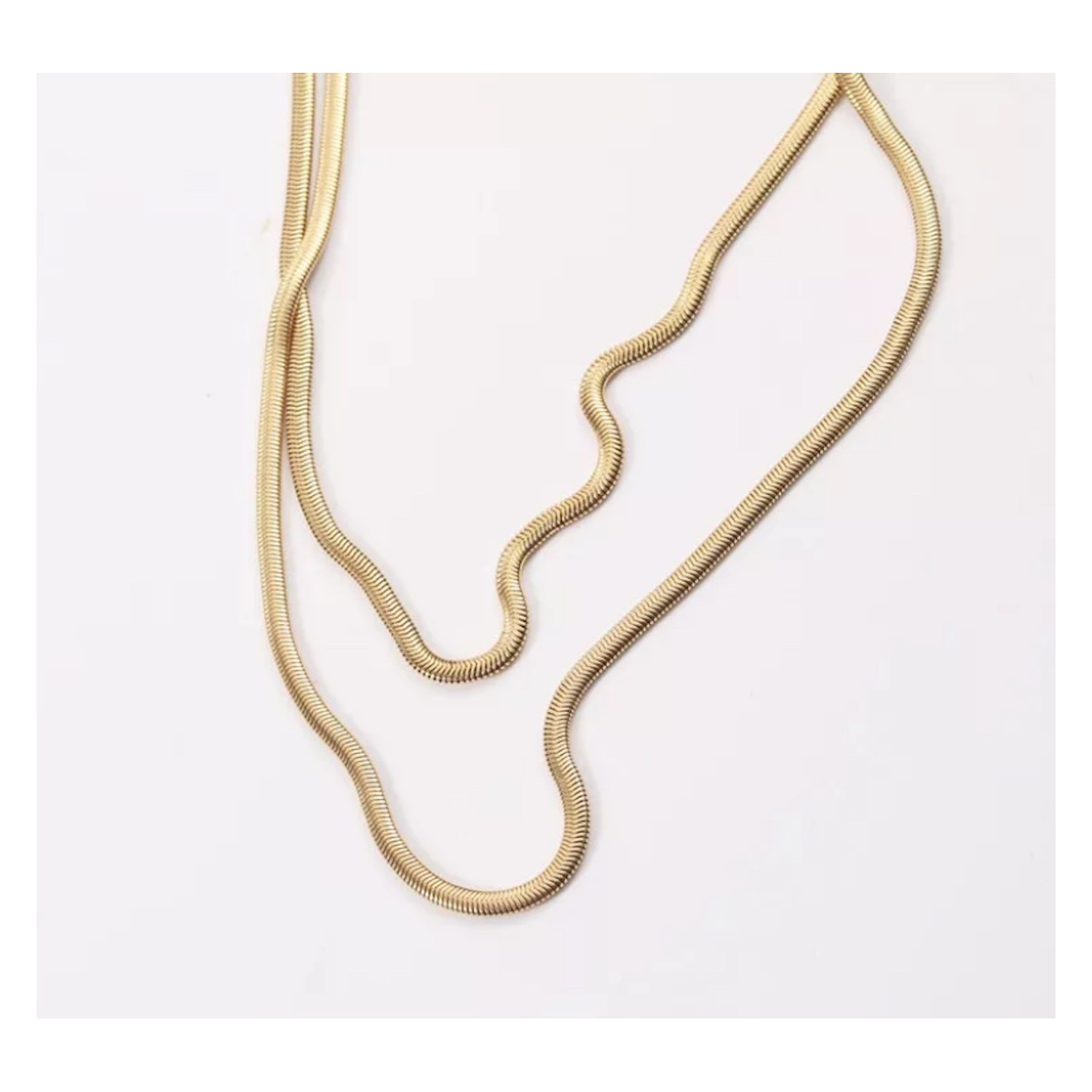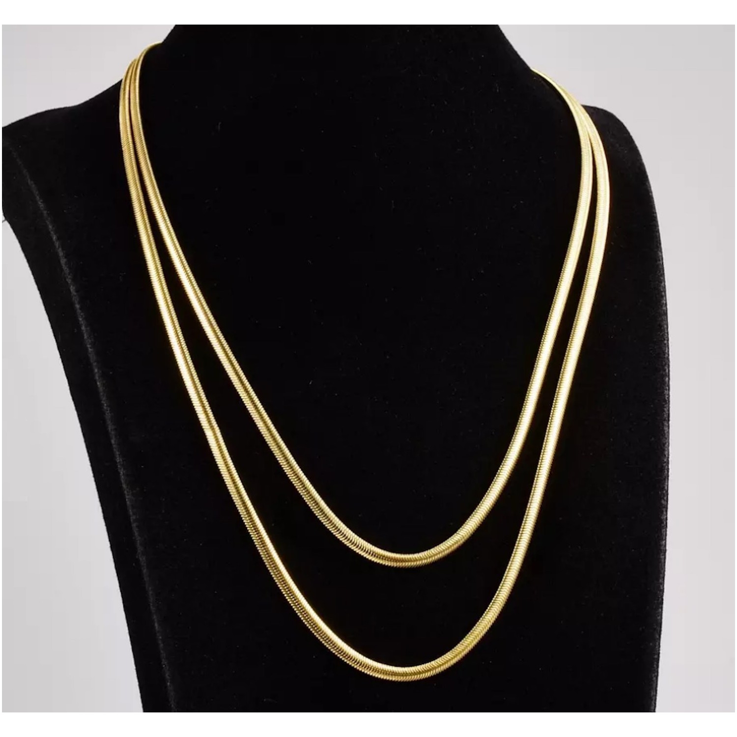 Collana Oro Donna Doppio Filo Catena Snake tonda piatta Acciaio