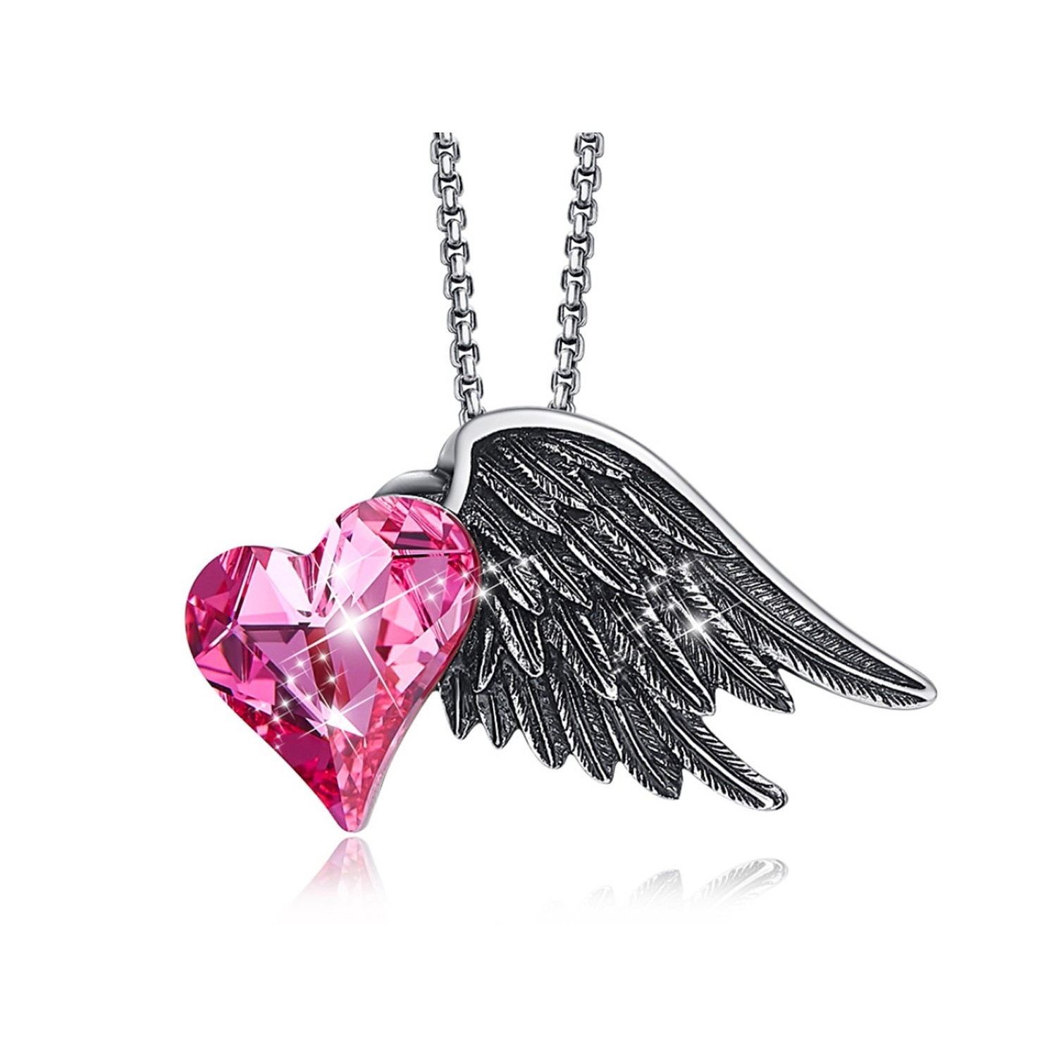 Collana Donna Ali con Cuore Rosa Swarovski Elements