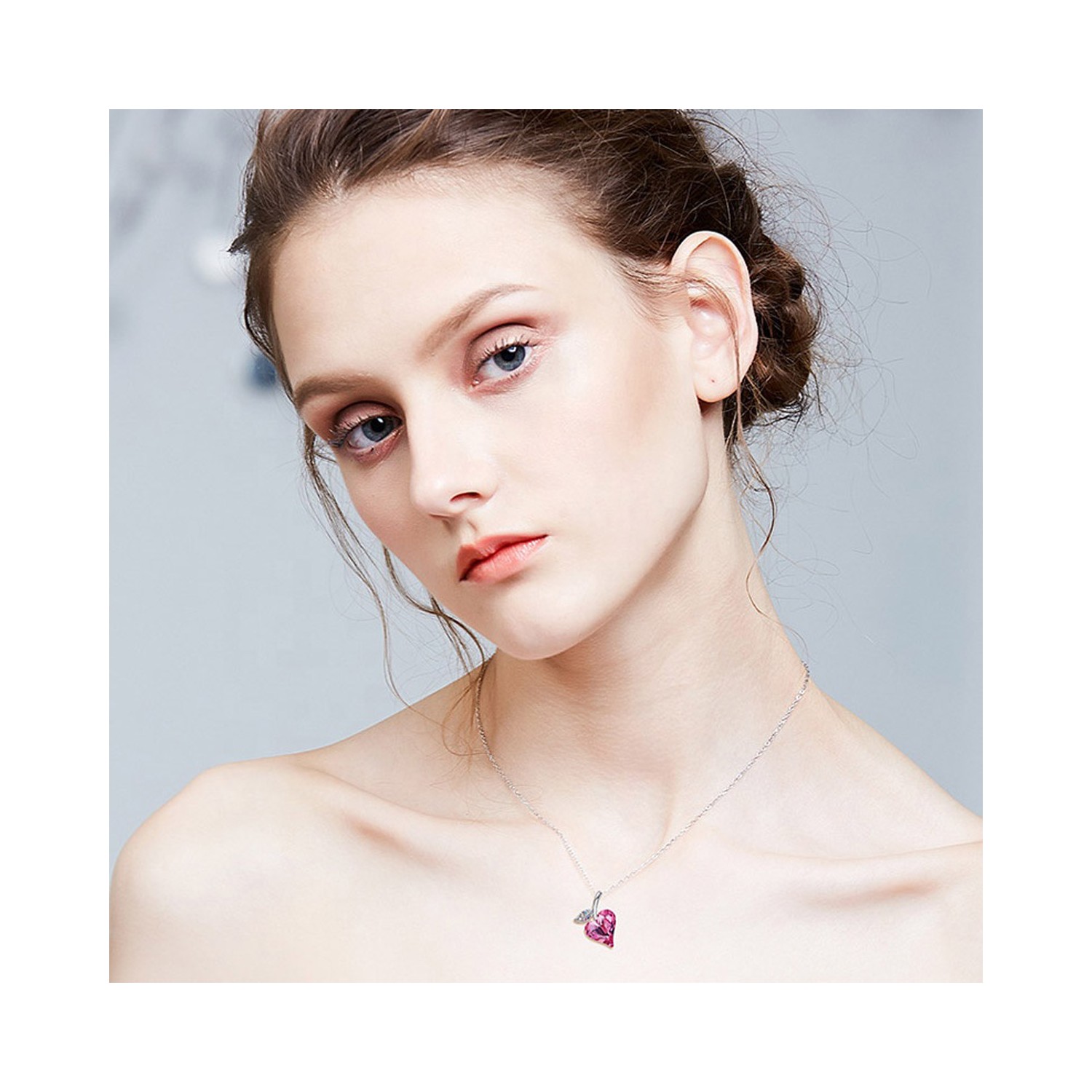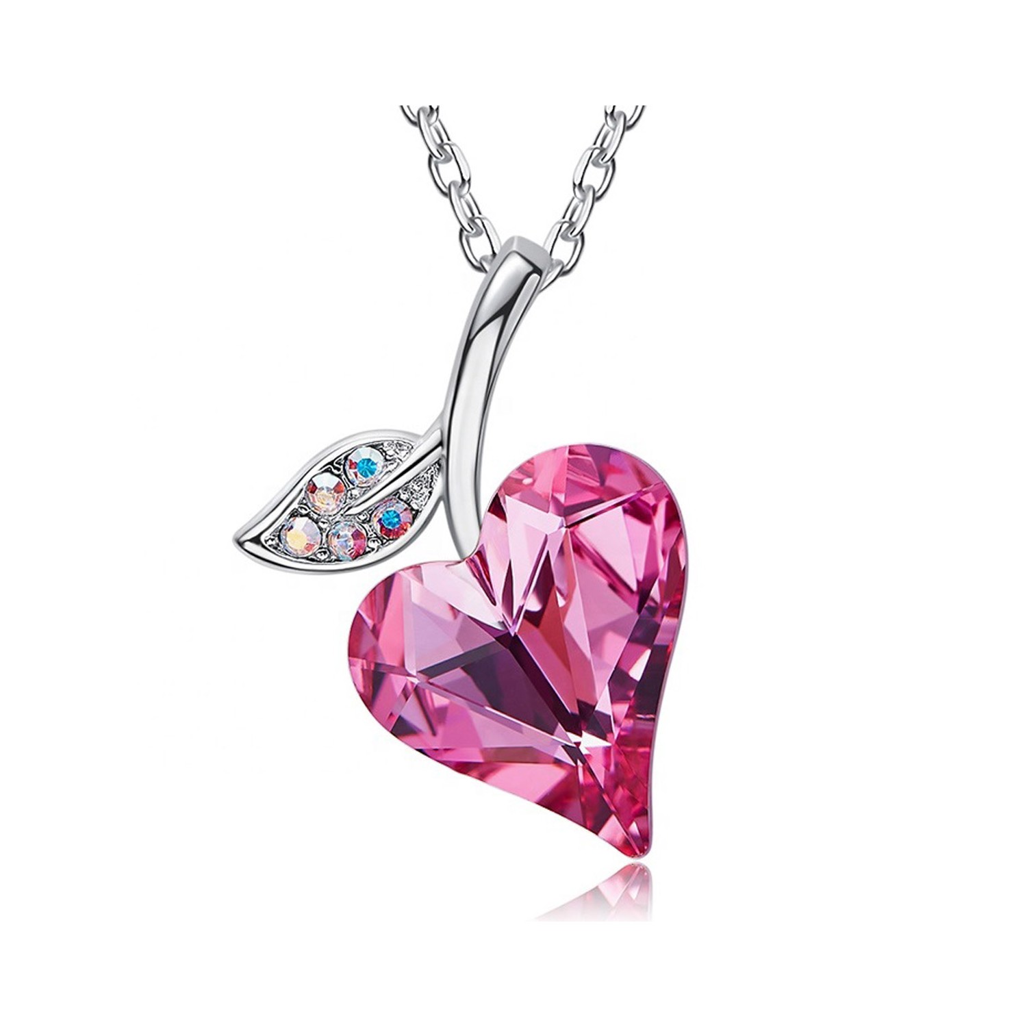 Collana con cuore Rosa e foglia swarovski elements