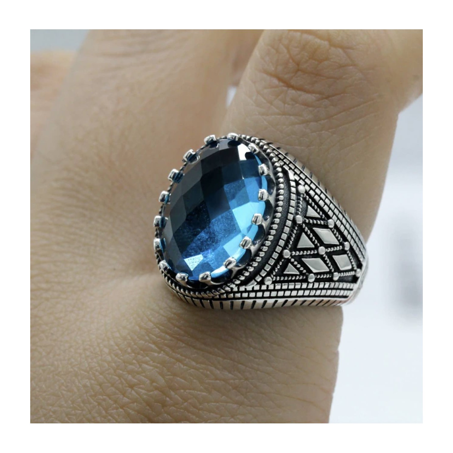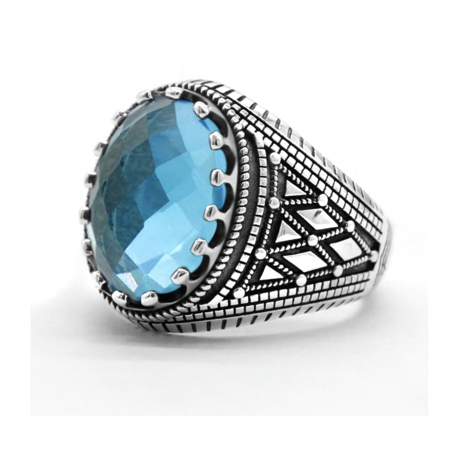 Sterling silver ring 925, chevalier style with faceted turquoise Zirconia