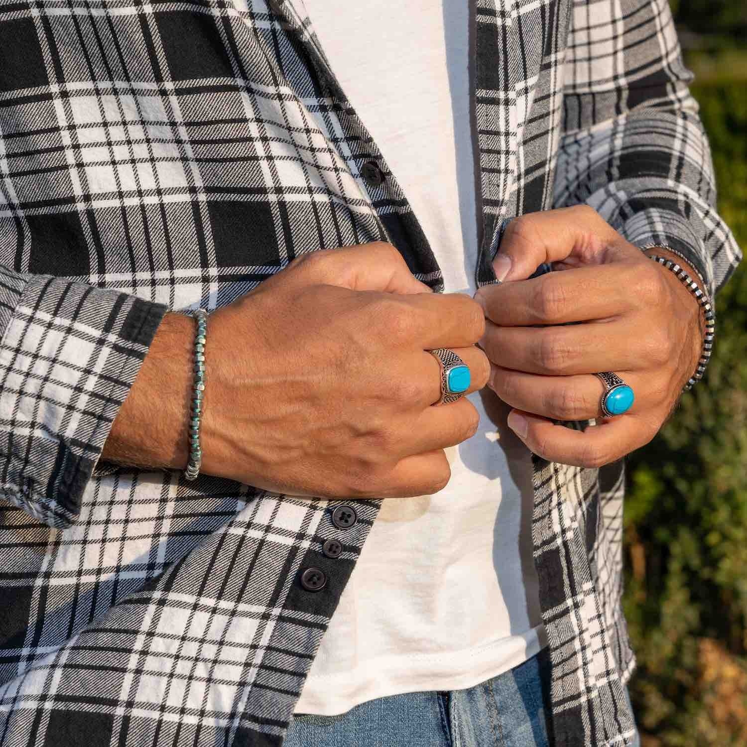 Sterling silver 925 ring, chevalier style, with a turquoise stone on the dial.