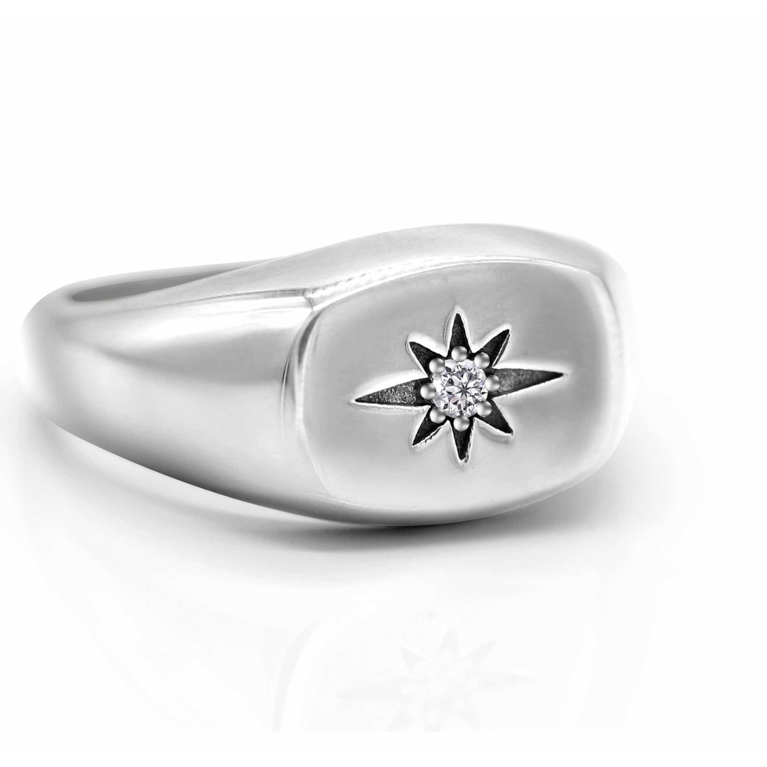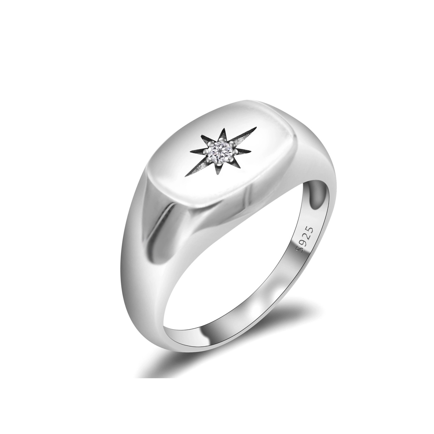 Silver 925 Men's Ring With central stone set in an inlaid star