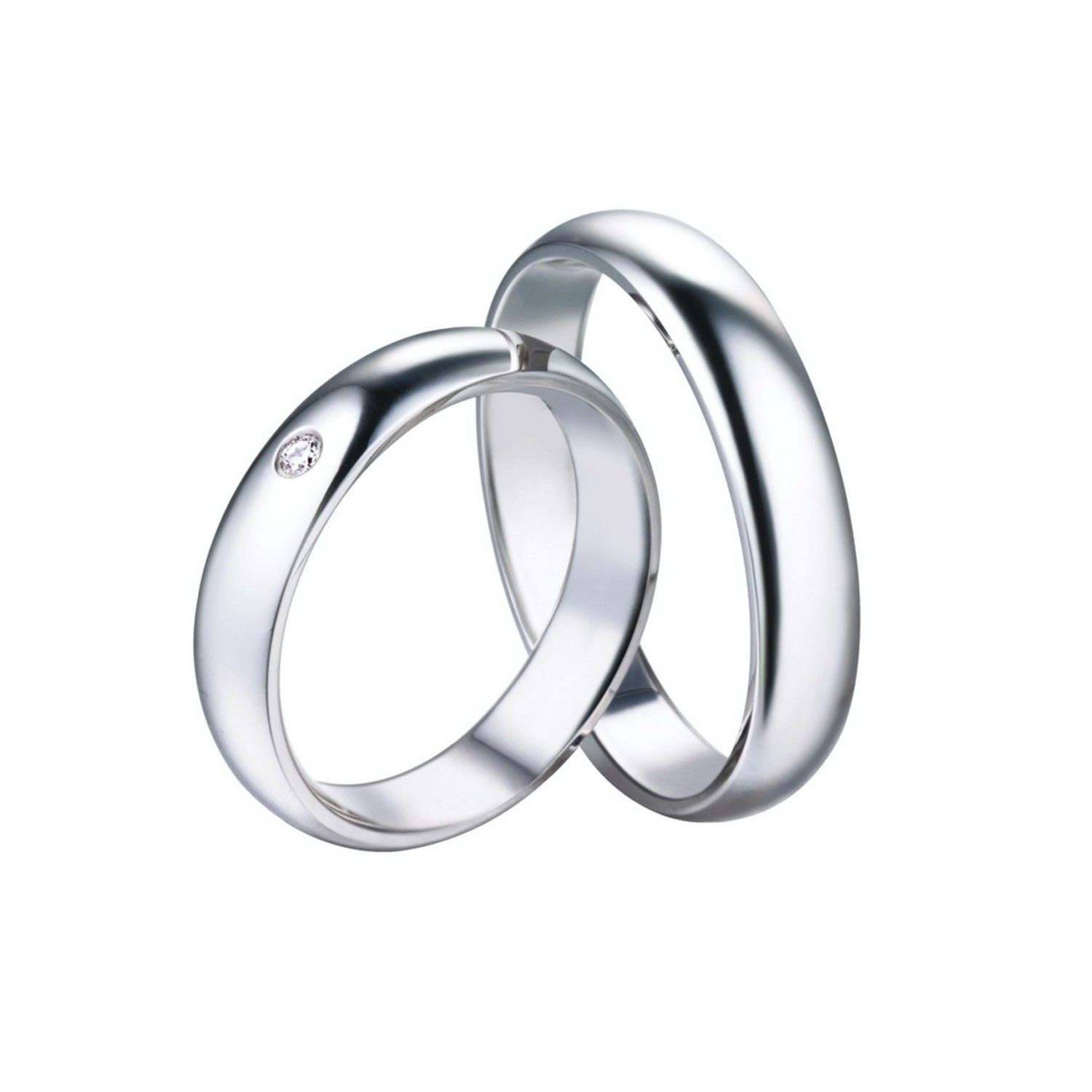 • Pair of 925 silver rings, a simple band for him and one with a zircon for her