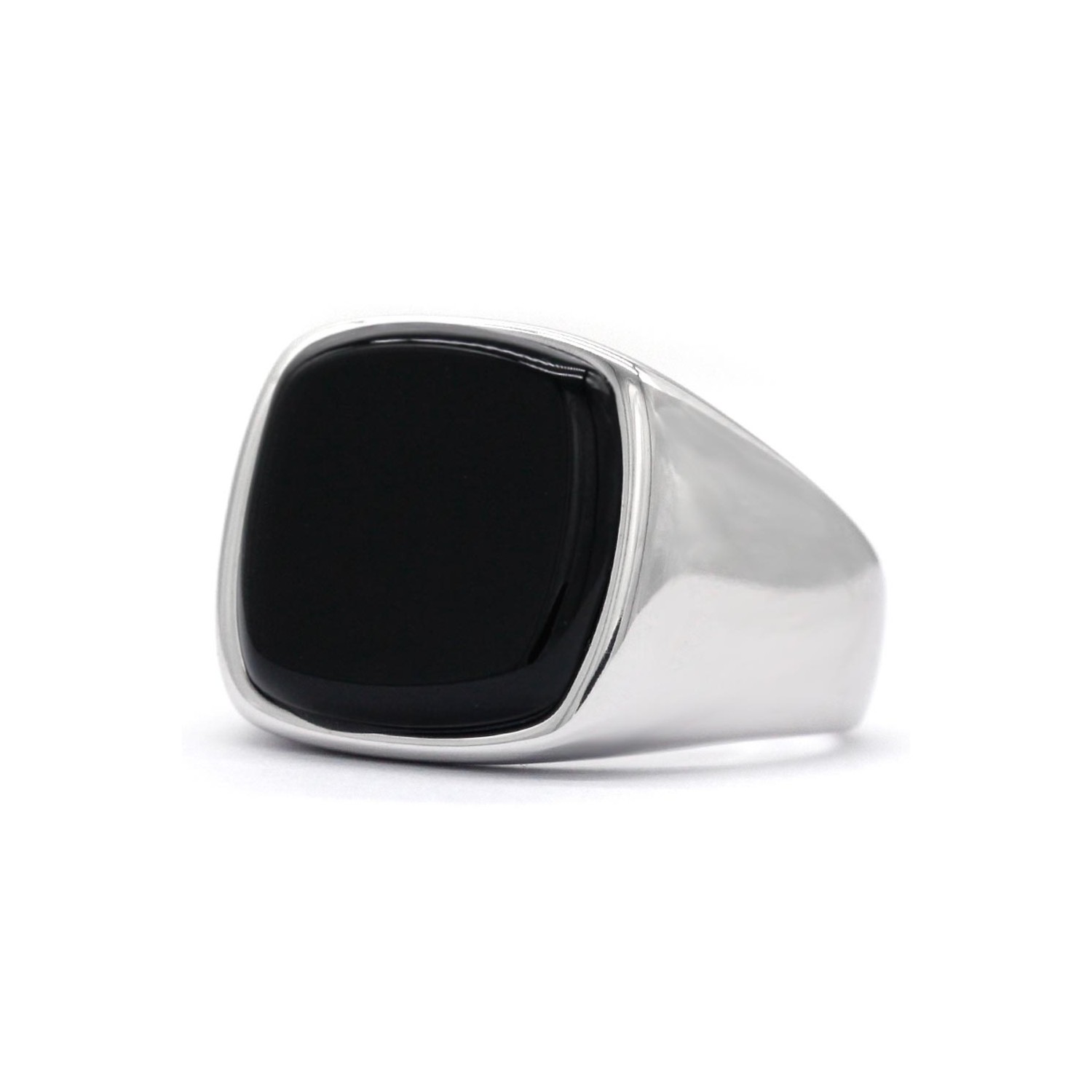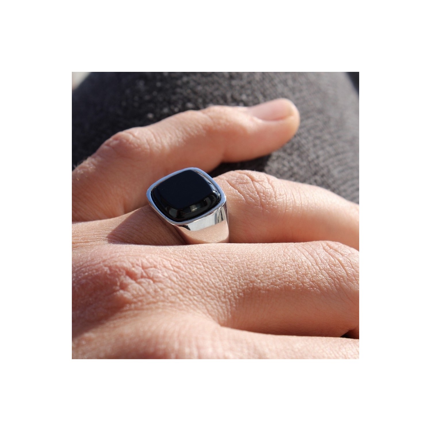 Square 925 silver ring, chevalier model, with a black Agate on the dial.