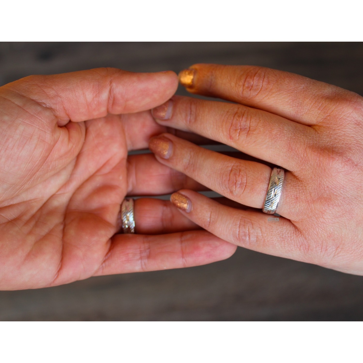 Couple of Engagement Rings in 925 Silver with Engravings of Name and Date.