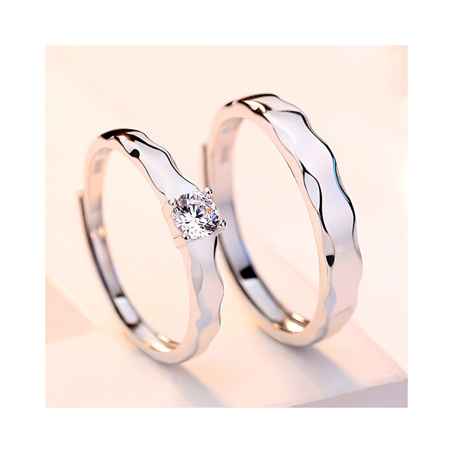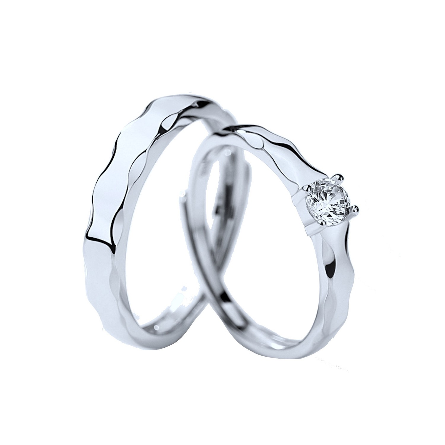 Couple of Adjustable Silver Rings for Men and Women with Zirconia