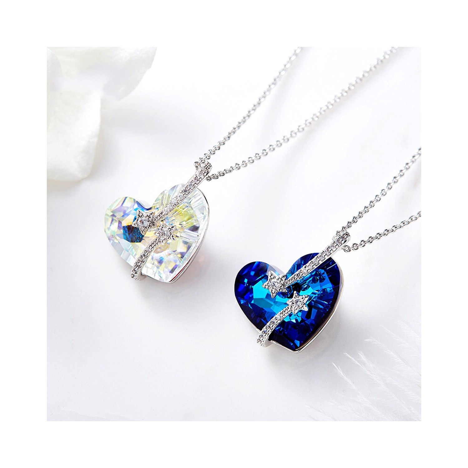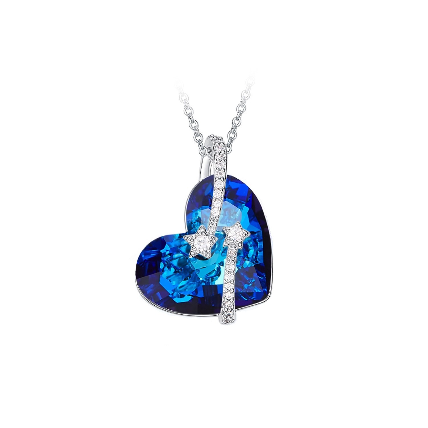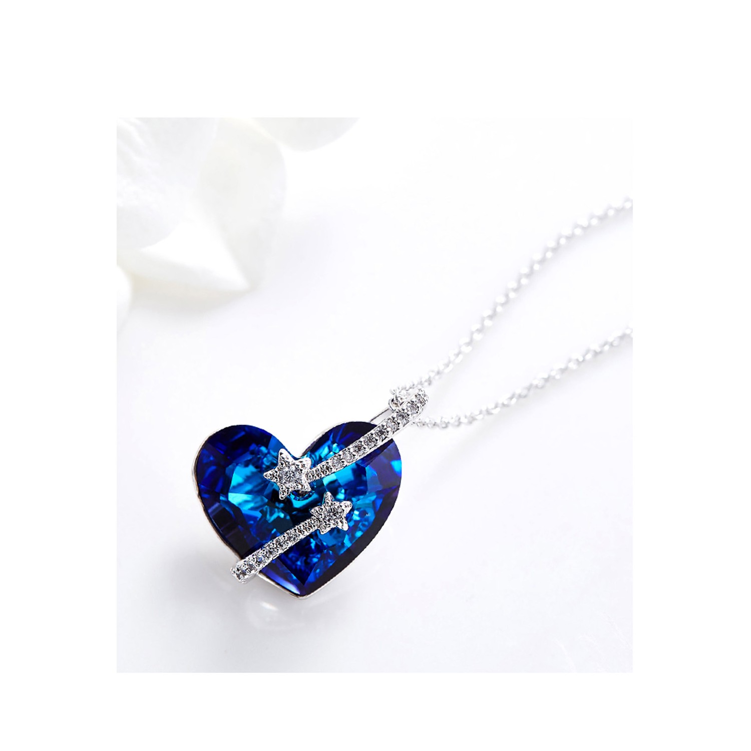 Women's Necklace Crystal Heart Blue Swarovski Elements and Stars