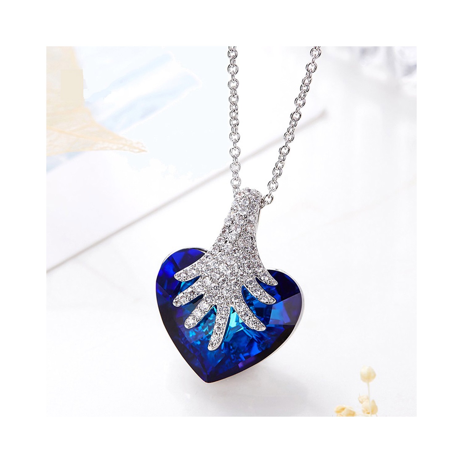 Women's Necklace Crystal Heart Blue Swarovski Elements Pendant