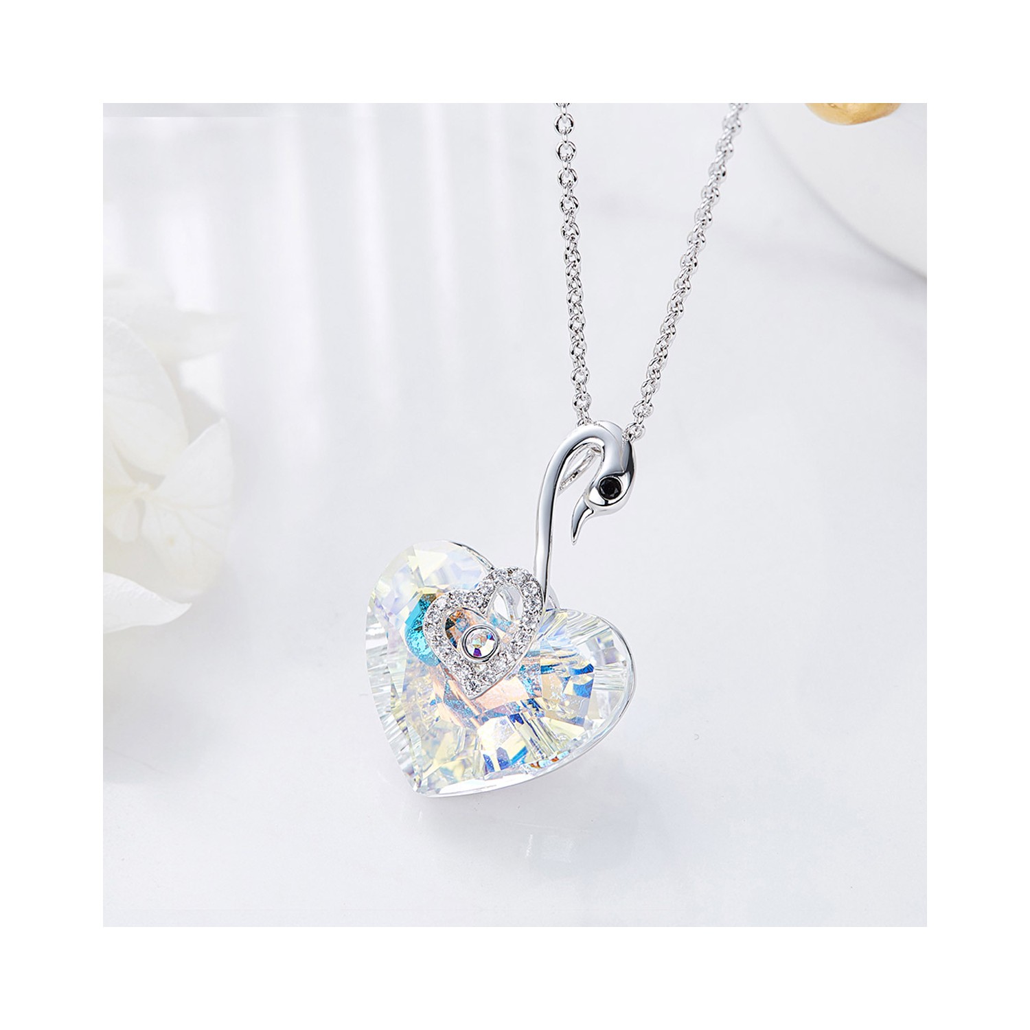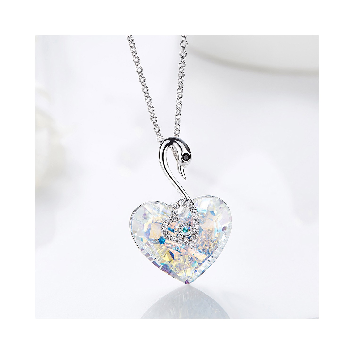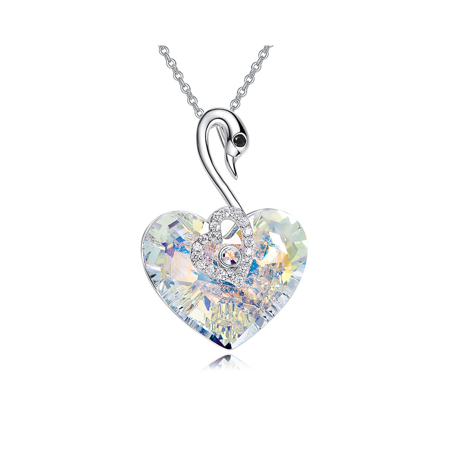 Women's Necklace Swan with Heart Aurora Borealis Swarovski Elements