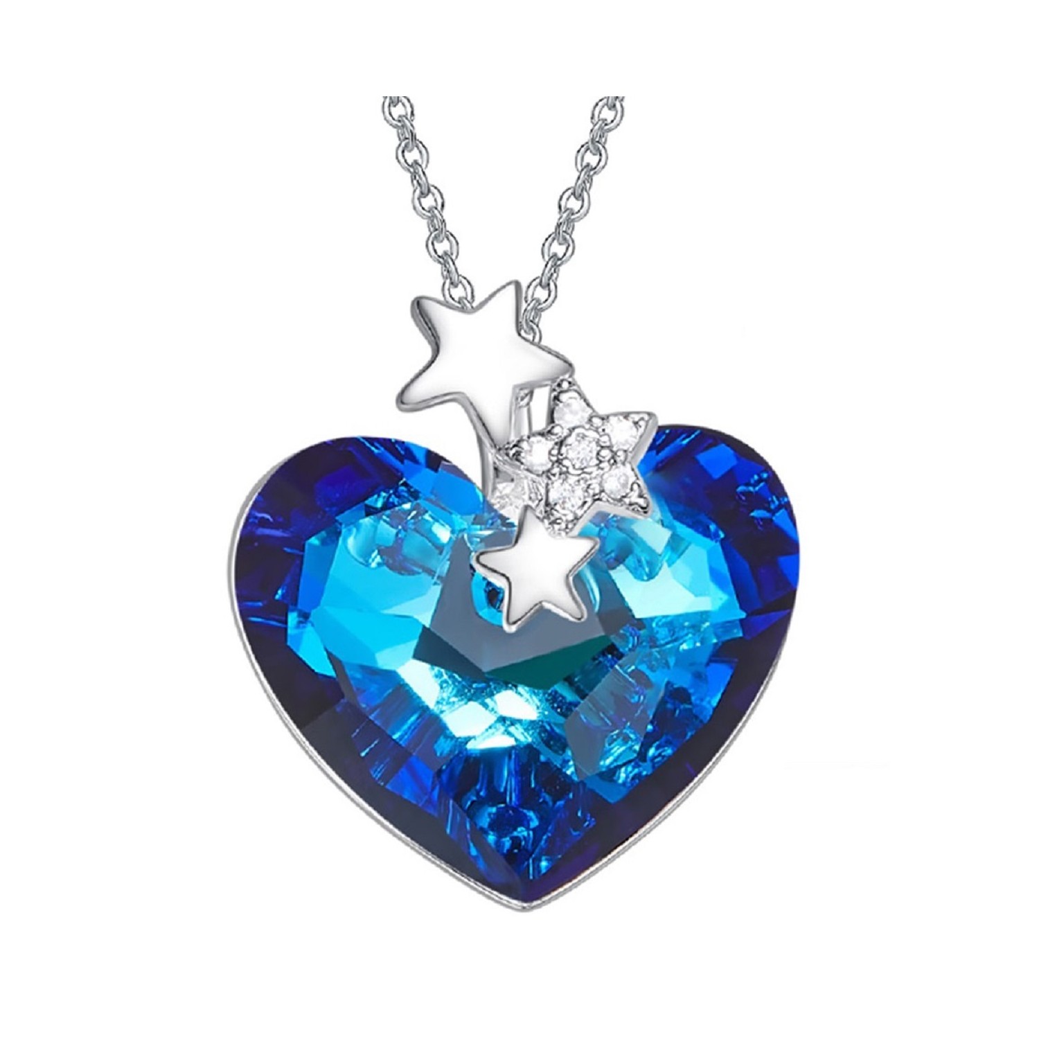 Women's Necklace Crystal Heart Blue Swarovski Elements with Stars