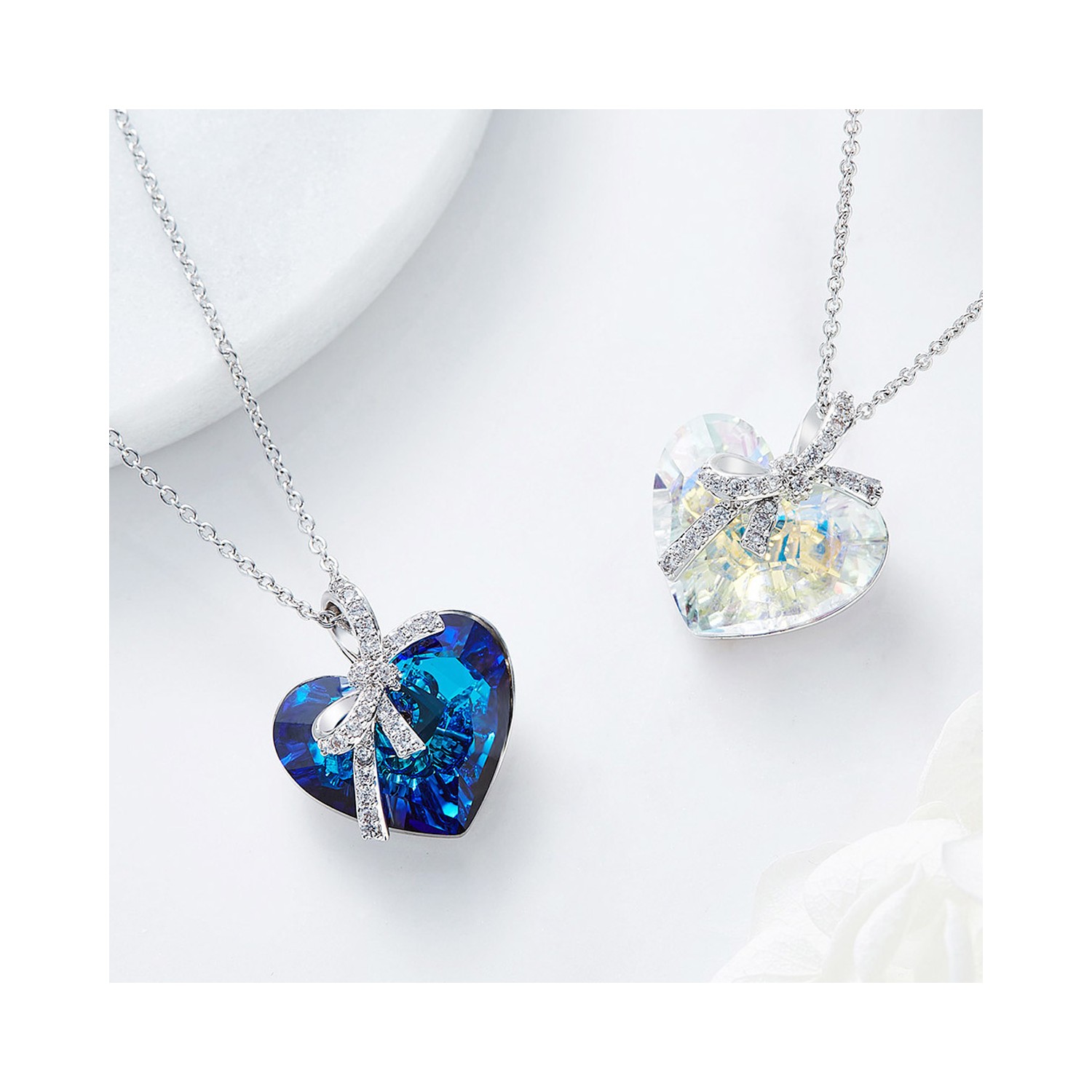 Women's Necklace Crystal Heart Aurora Borealis Swarovski Elements with Bow