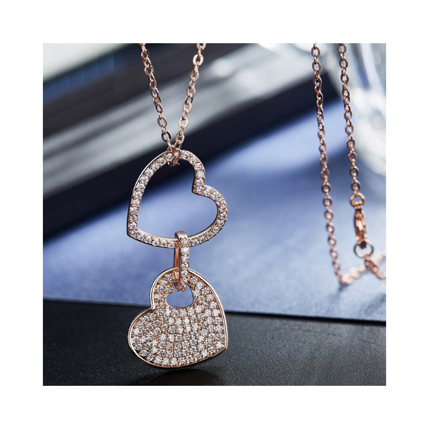 Long Necklace Women Heart Crystals Swarovski Elements Rose Gold