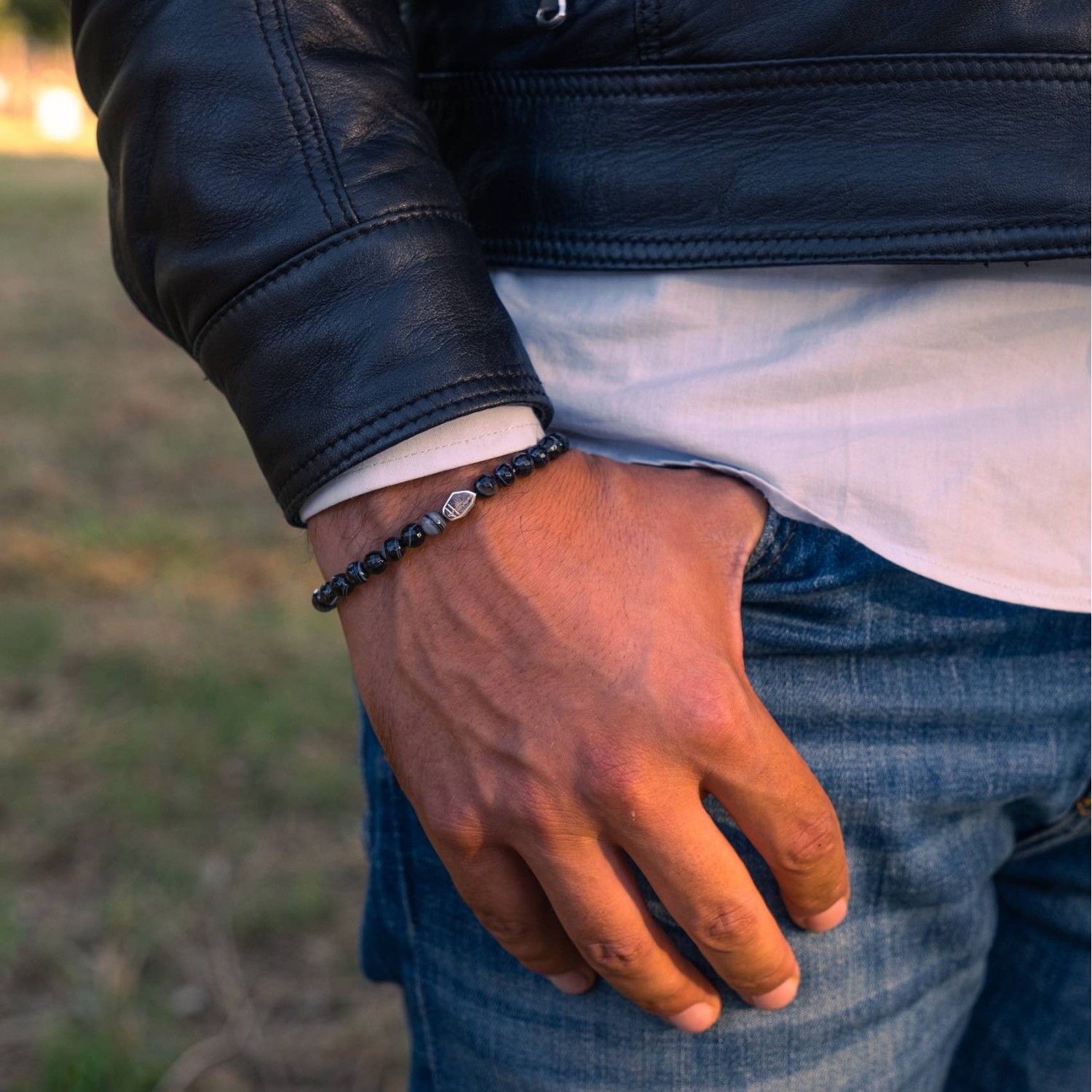 Black Agate Stones Bracelet 6 MM and 925 Silver