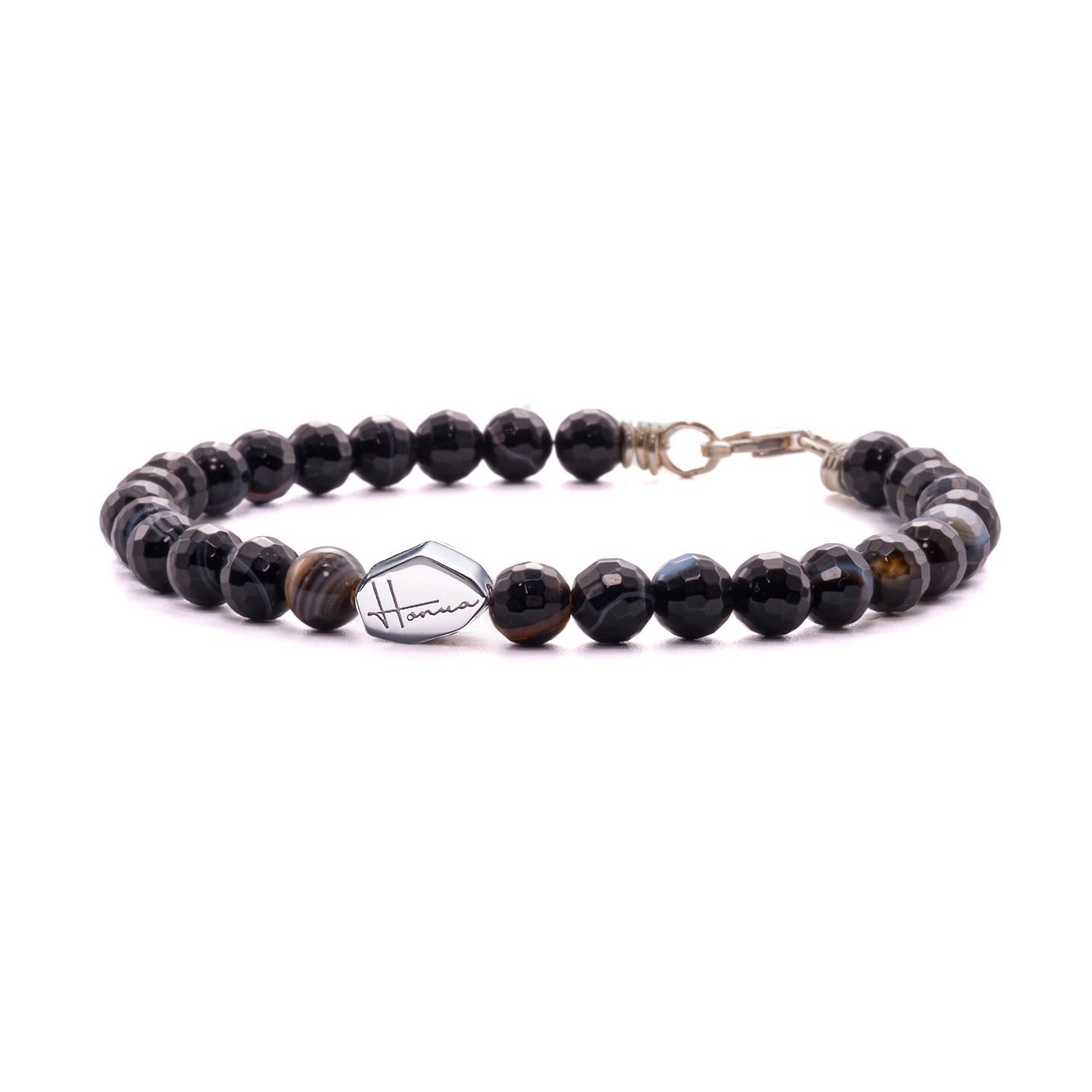 • Material: Natural stones Striated Black Agate of 6 mm and 925% Silver