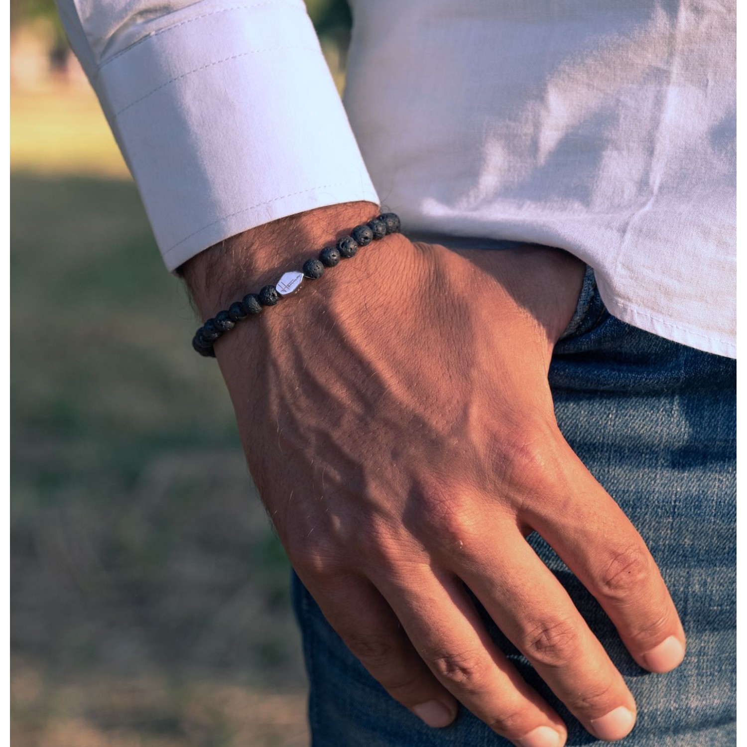 • Material: Natural stones Lava of 6 mm and 925% Silver