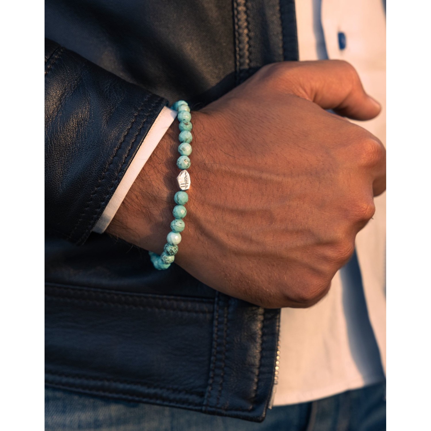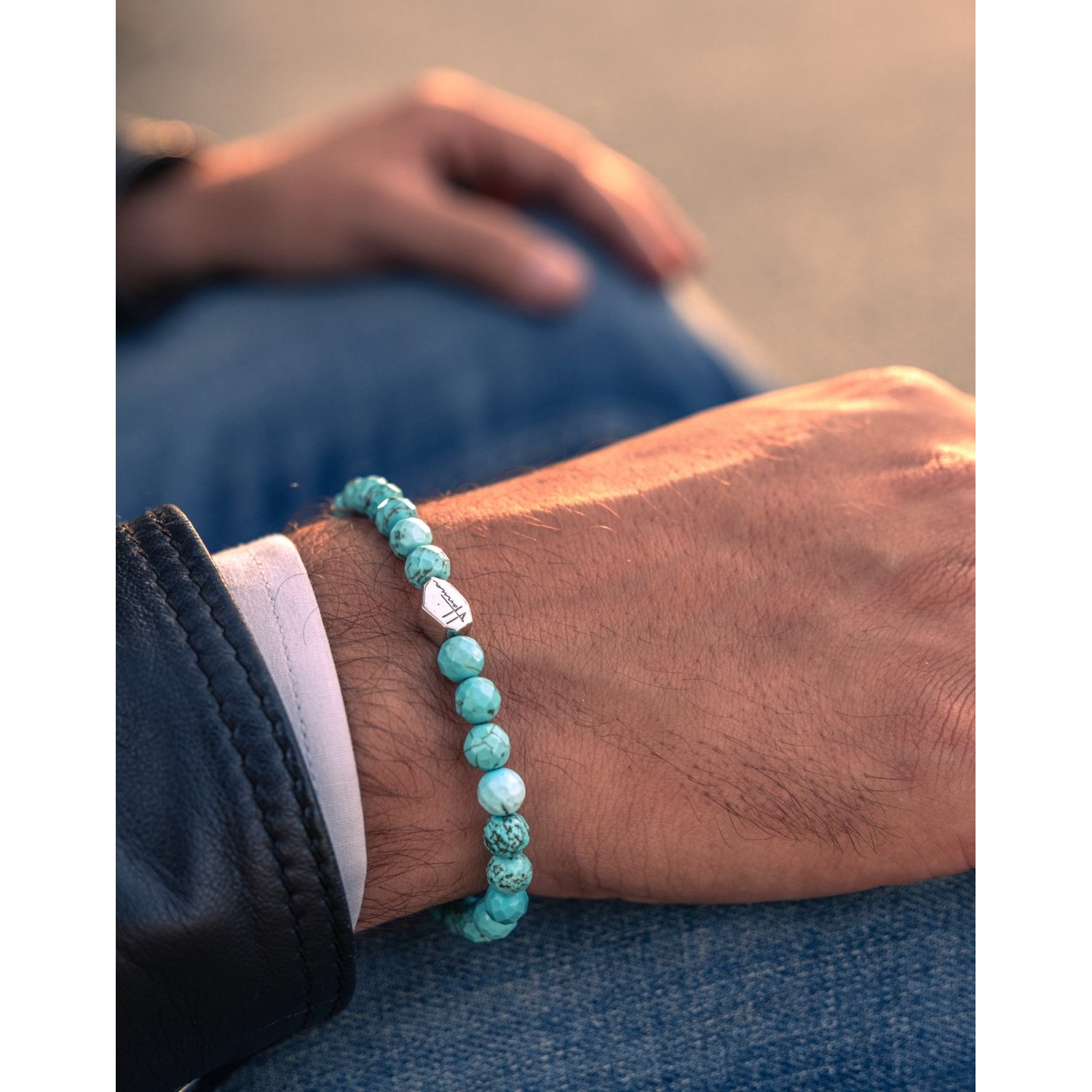 Bracelet with 6 mm round beads in Turquoise, inspired by the colors of late afternoon, when the sun tends to set