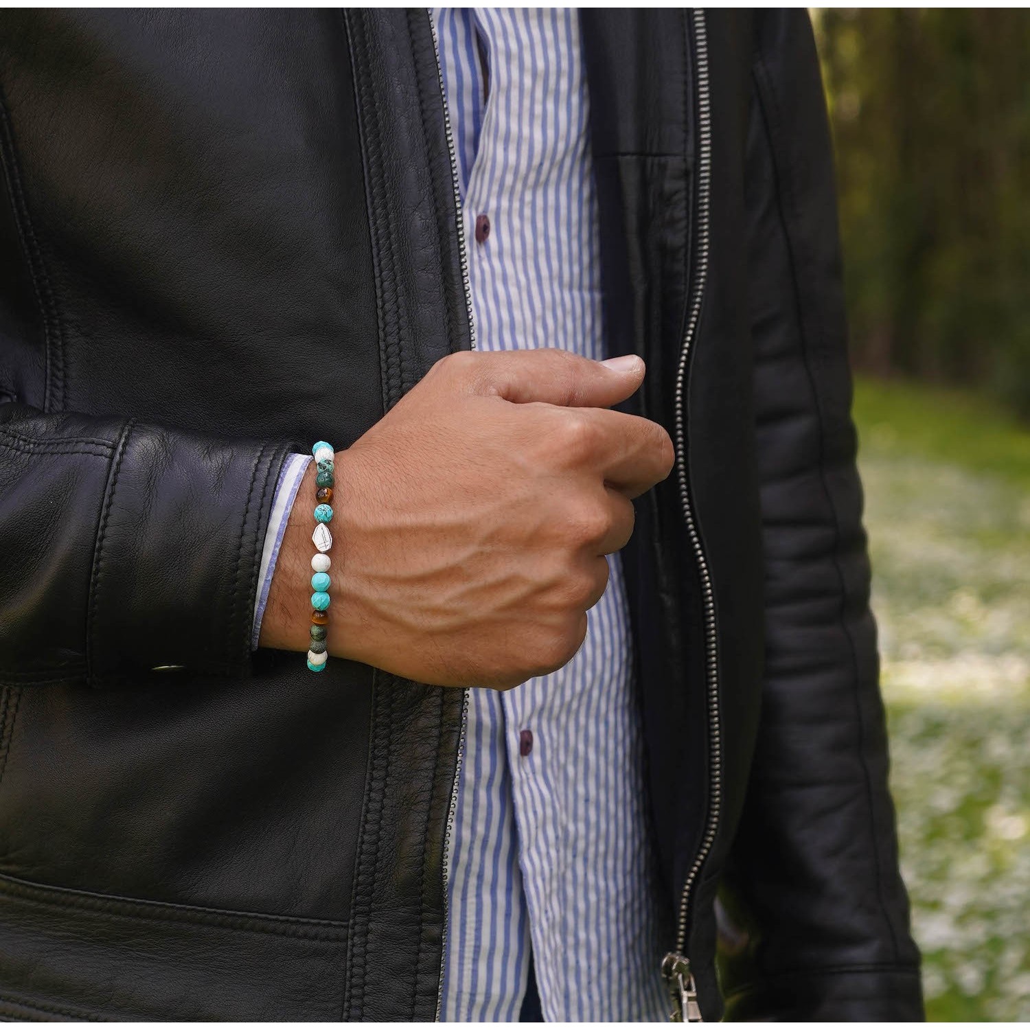 Natural Stone Necklace Turquoise, Jasper, Bronzite, and 925 Sterling Silver