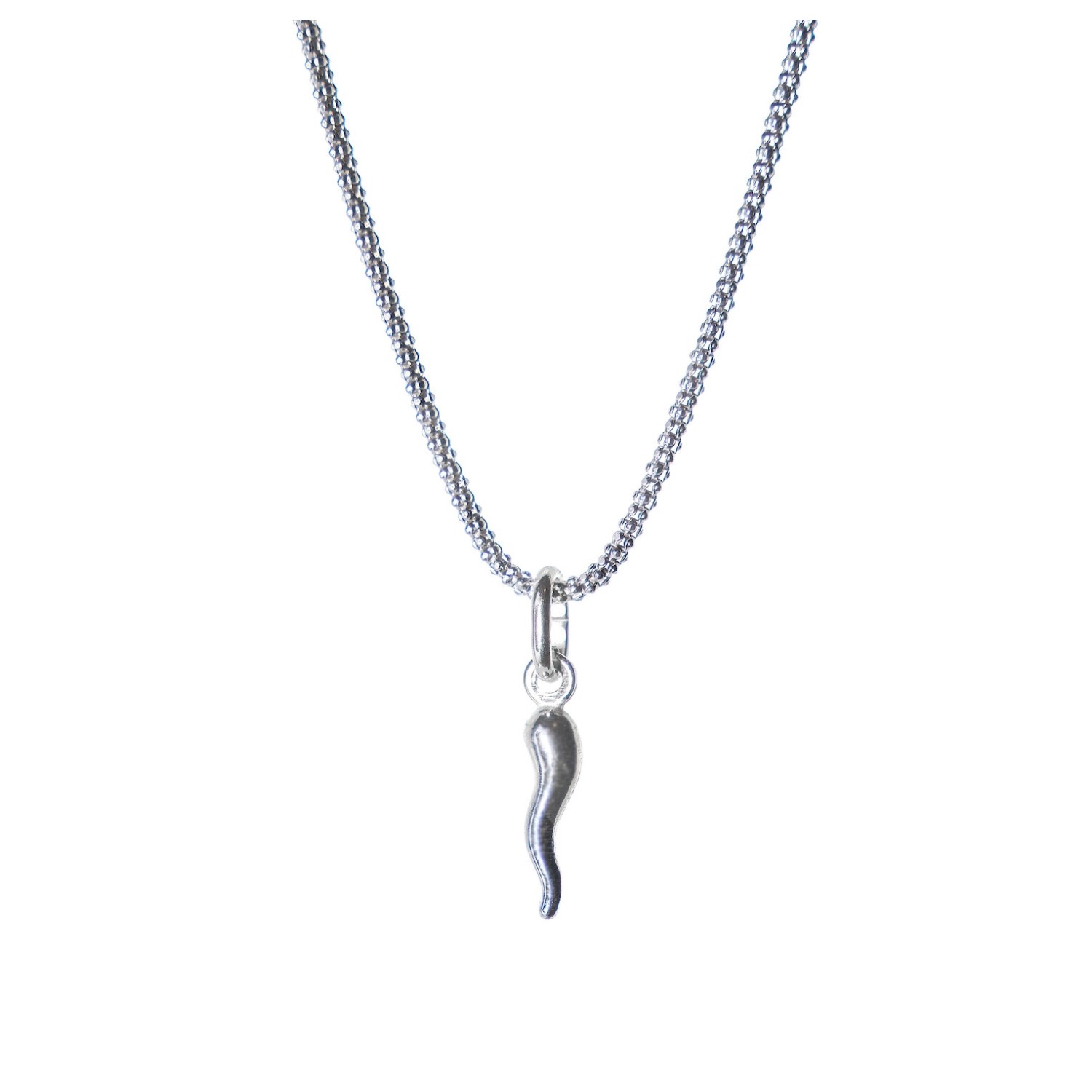 Sterling Silver 925 Unisex Necklace with Cornetto Pendant, Made In Italy, comes with a Certificate of Authenticity for the materials