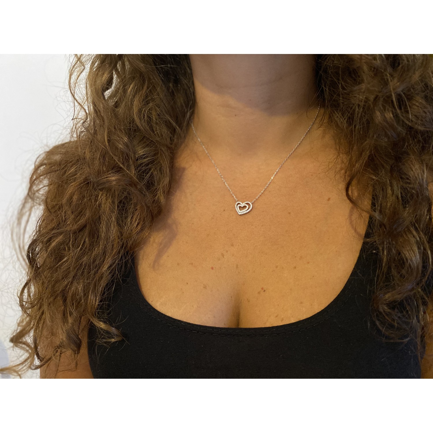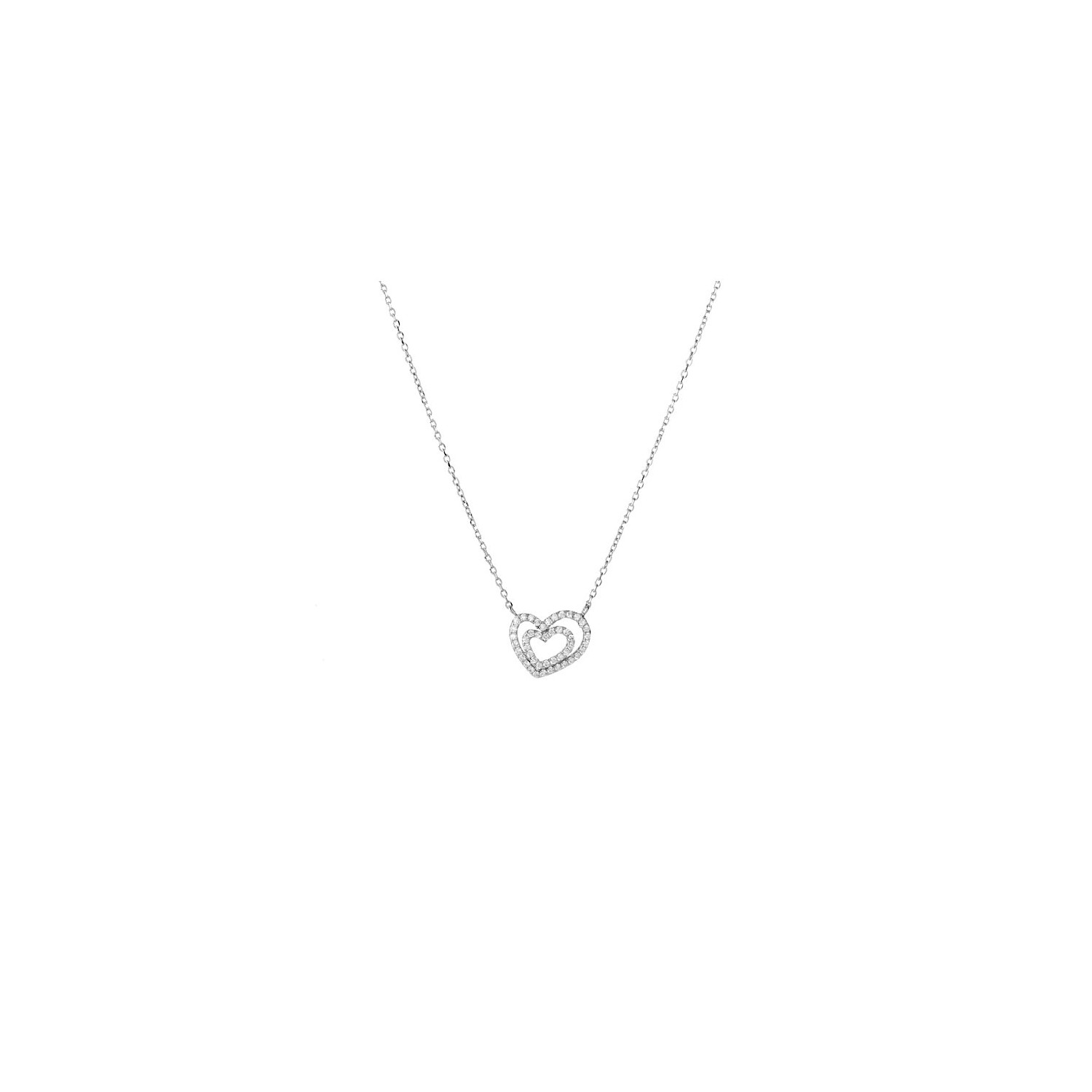 Women's Heart Chain Necklace in 925 Silver White Gold Plated