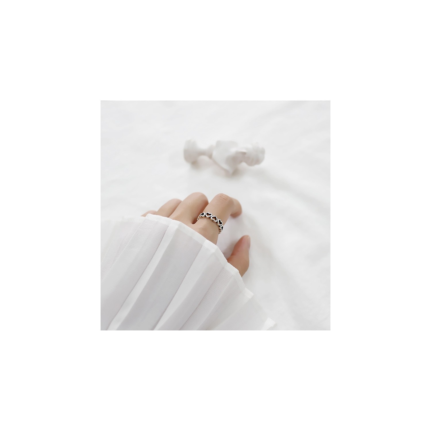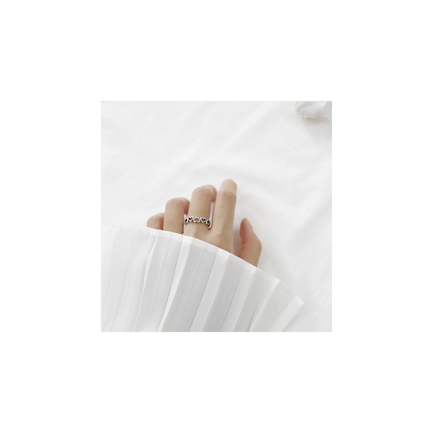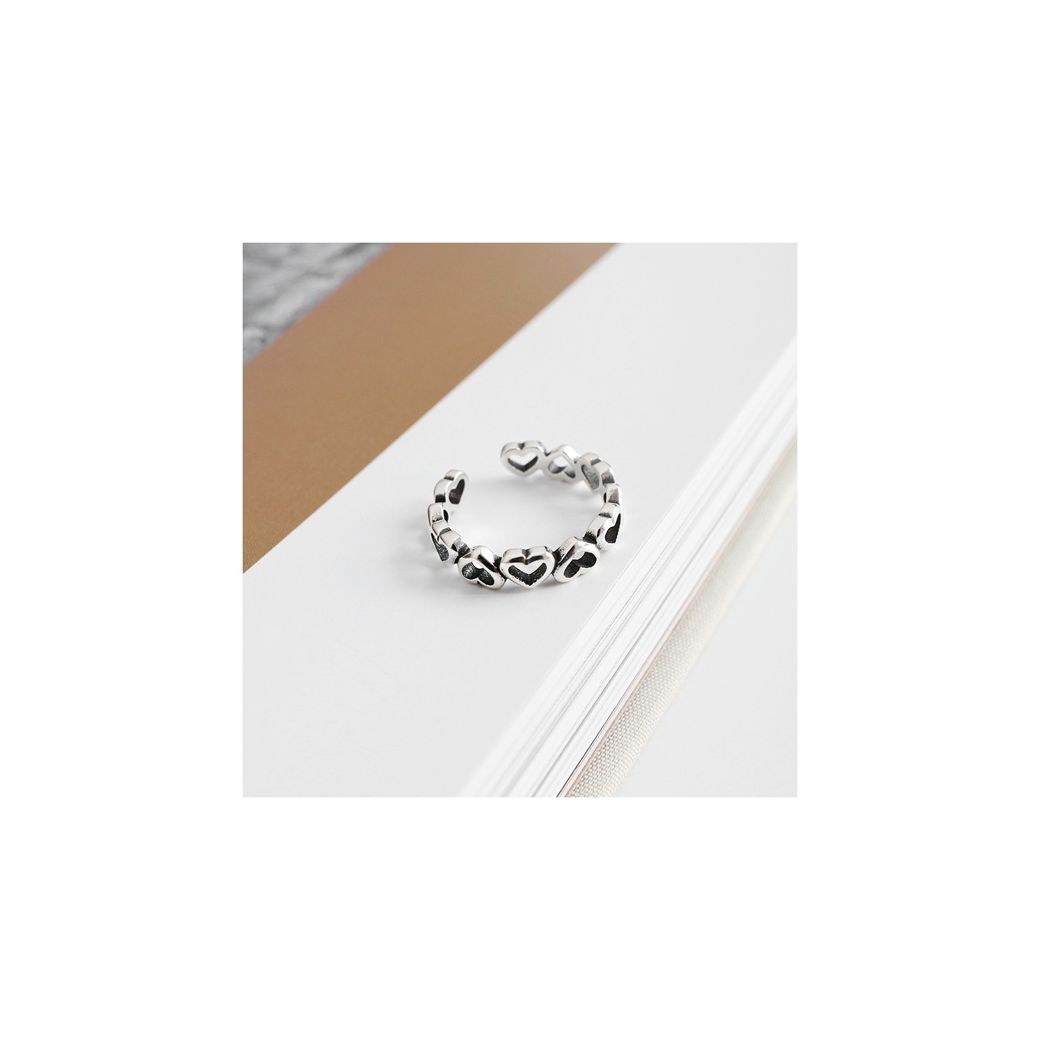 Adjustable Women's Ring in 925 Silver Band with Hearts