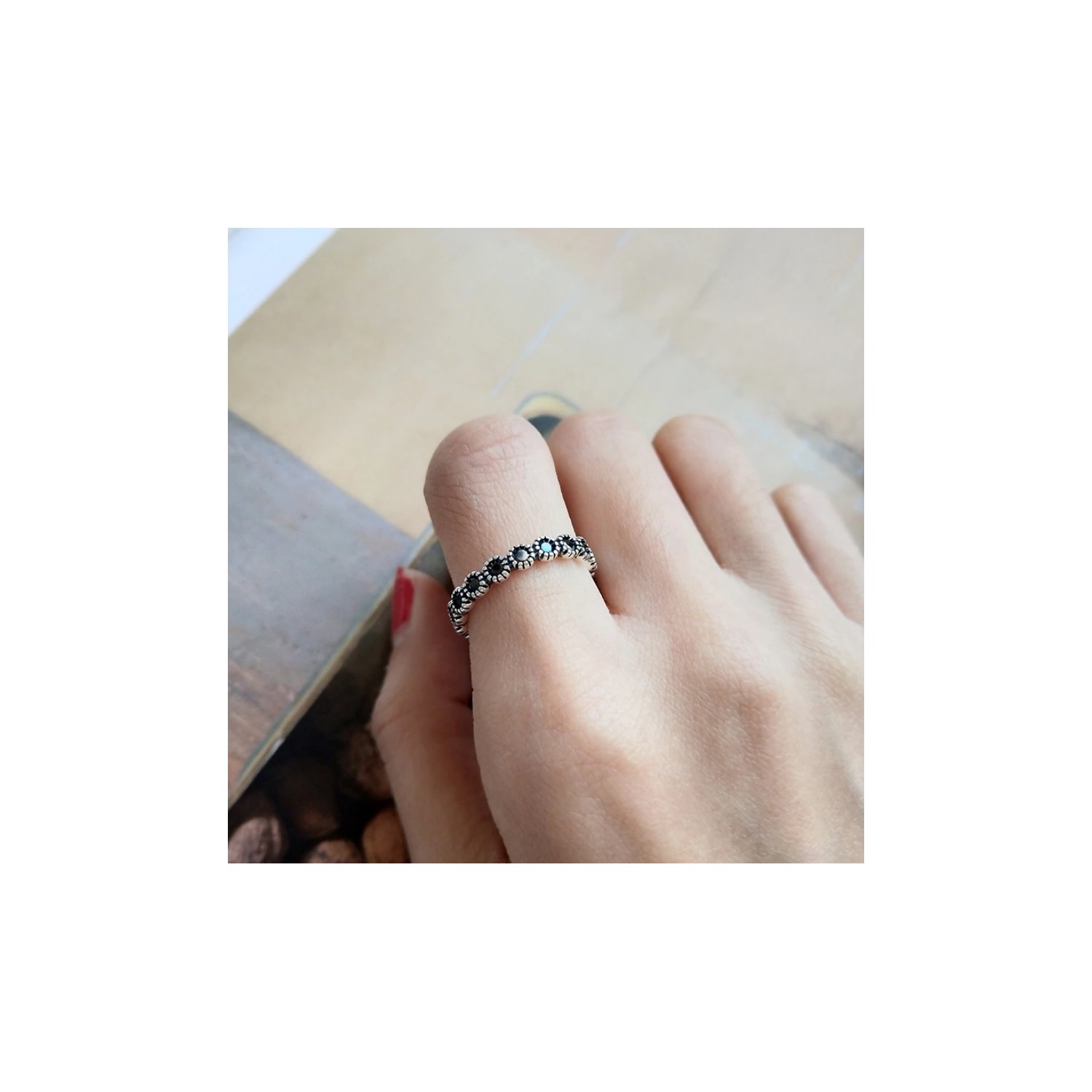Eternity band with black crystals