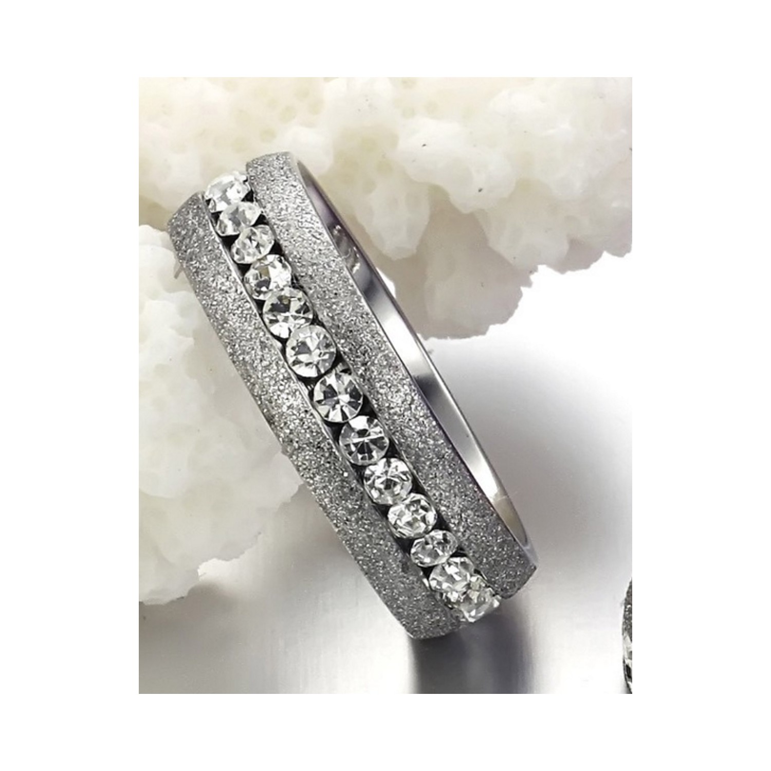 Stainless steel ring, With crystals spinning all around. Elegant and refined