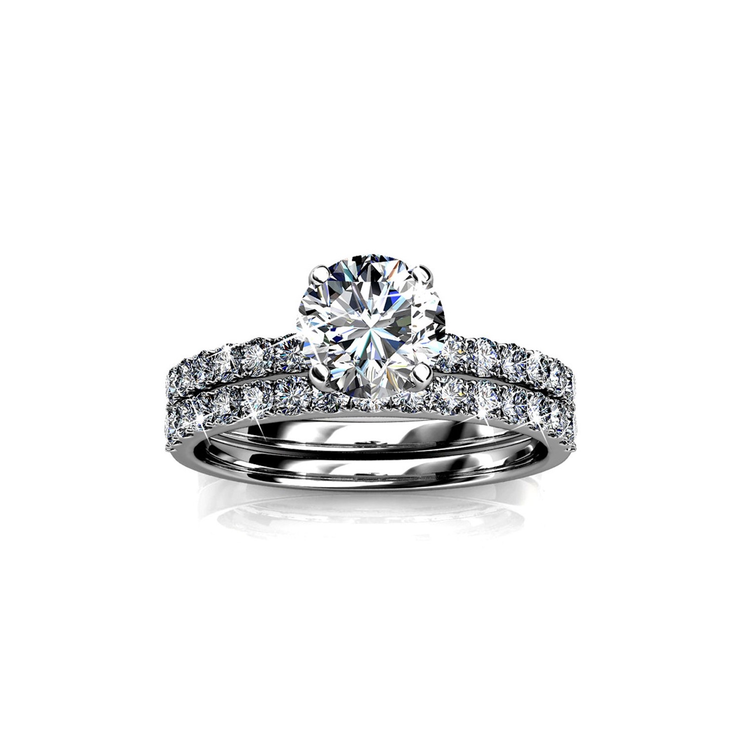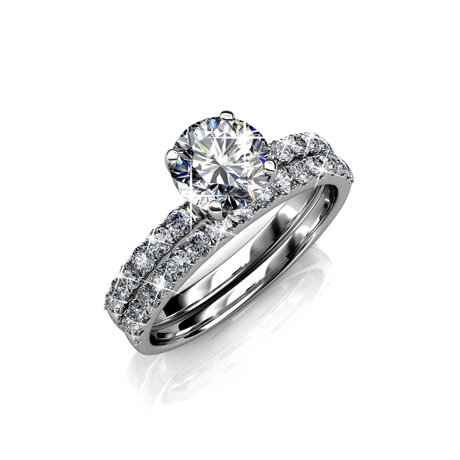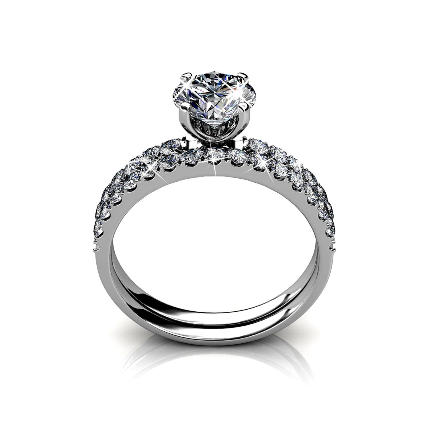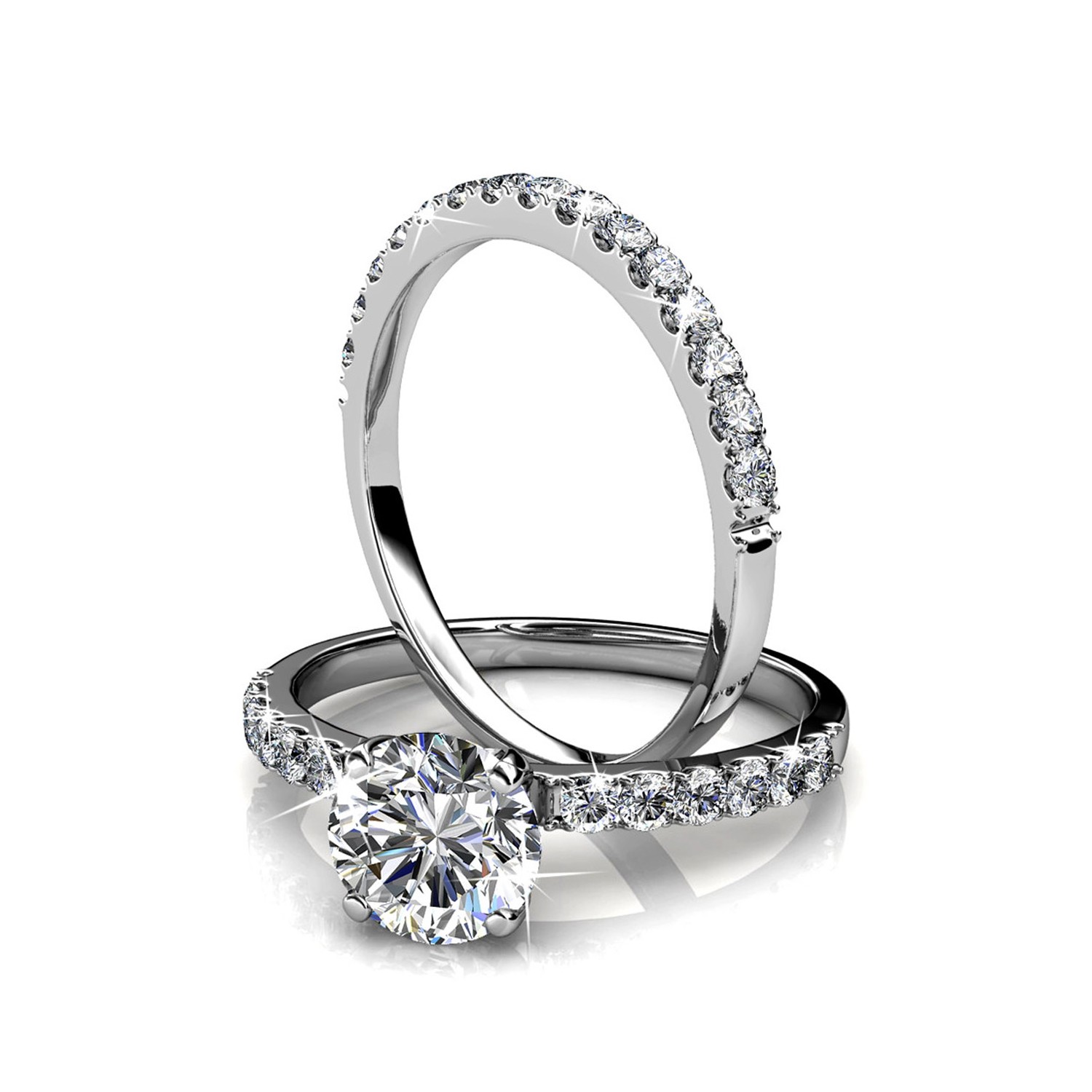 • Ring Details: The Solitaire ring has a Central Crystal Model 1357 Brilliant Cut, Color Crystal Comet Argent Light V SI, size 5 mm; Side Crystals Model 1028 Xilion Chaton, color Crystal 001, size 2 mm. The Eternity Ring has Crystals Model 1028 Xilion Chaton, color Crystal 001, size 2 mm