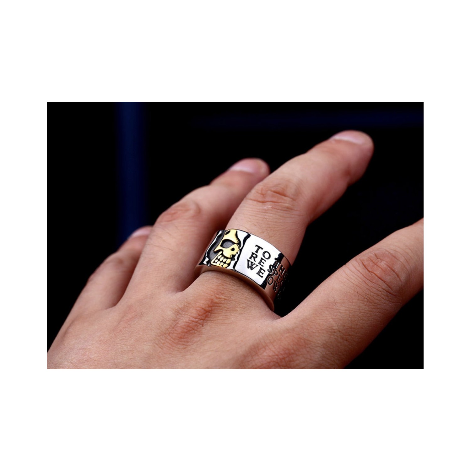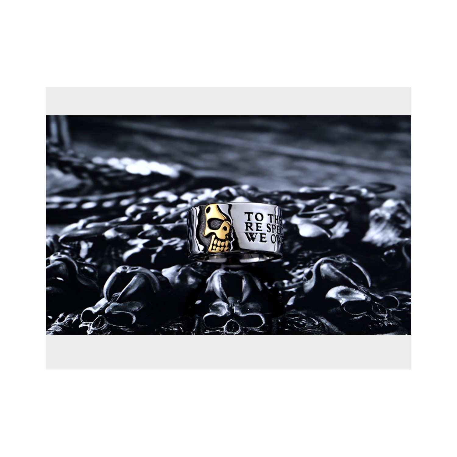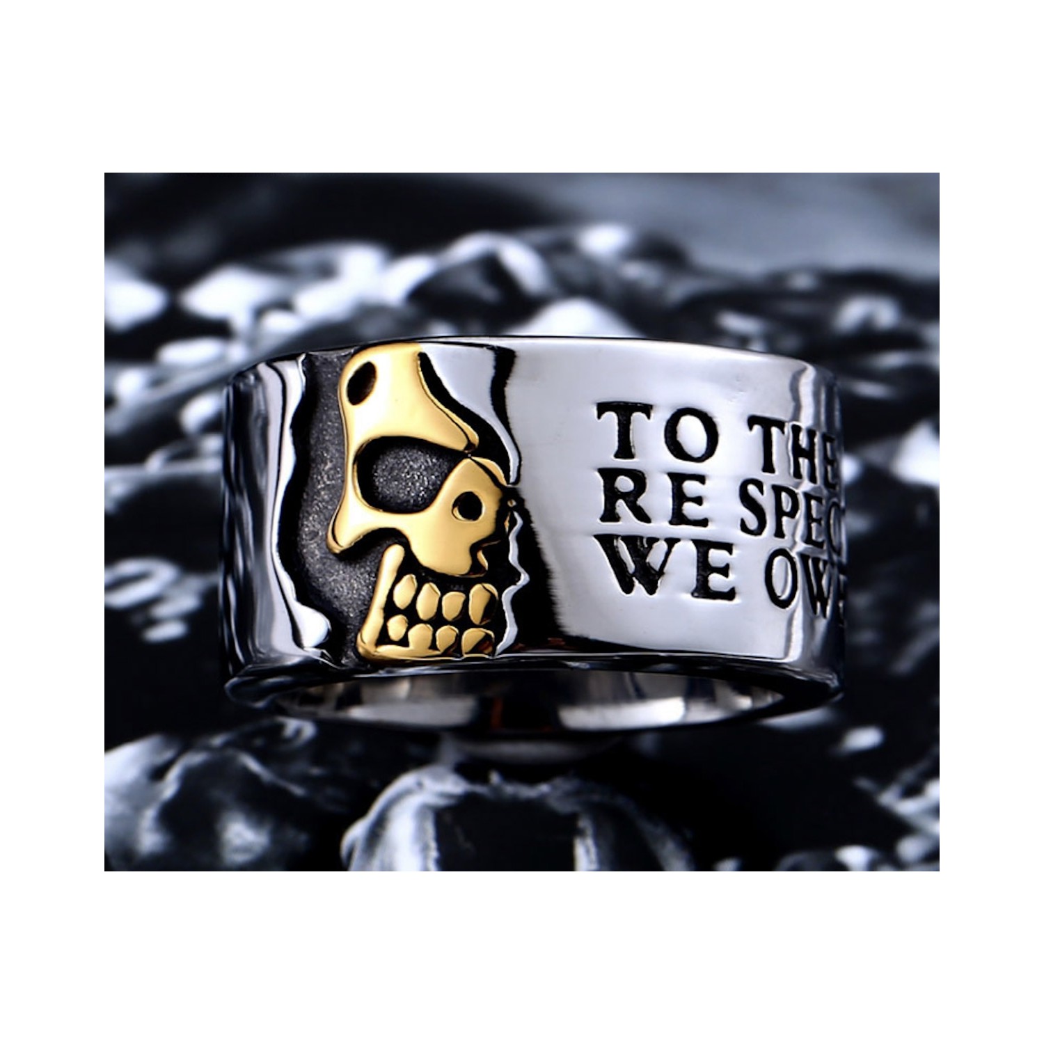 Band ring with Skull and engraving: TO THE LIVING RE SPECT BUT TO WE OWE ONLY