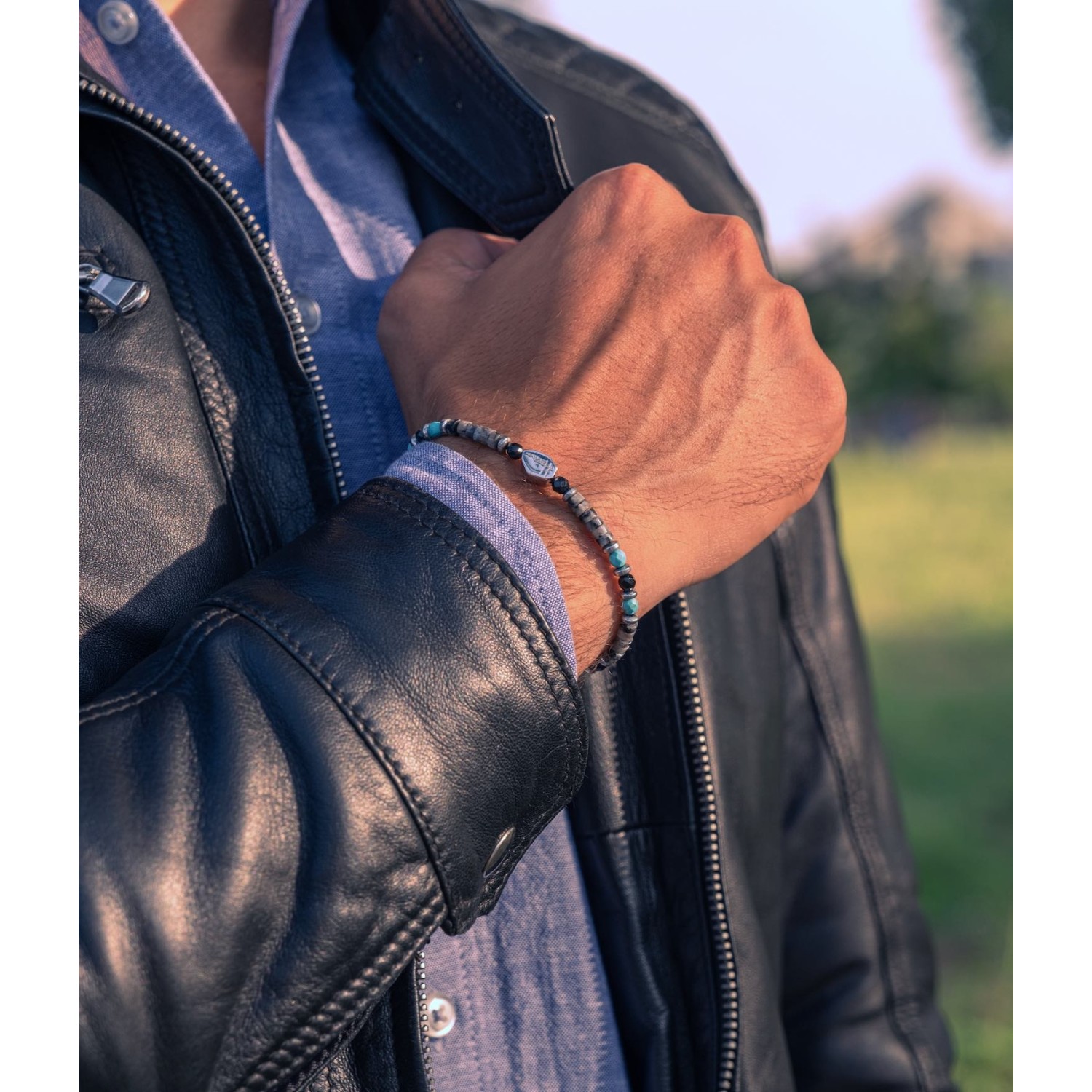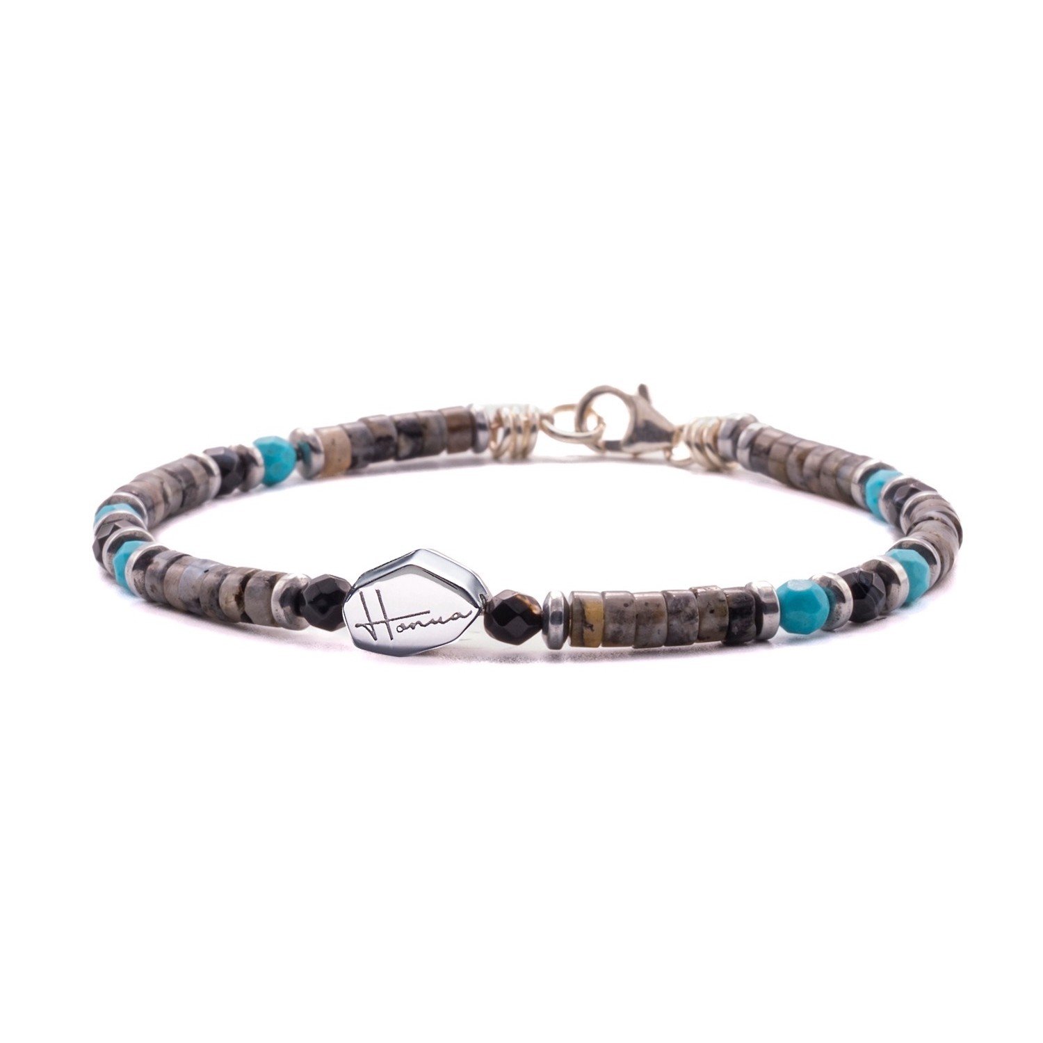 Necklace with Natural Stones Labradorite, Turquoise, Agate, and 925% Silver