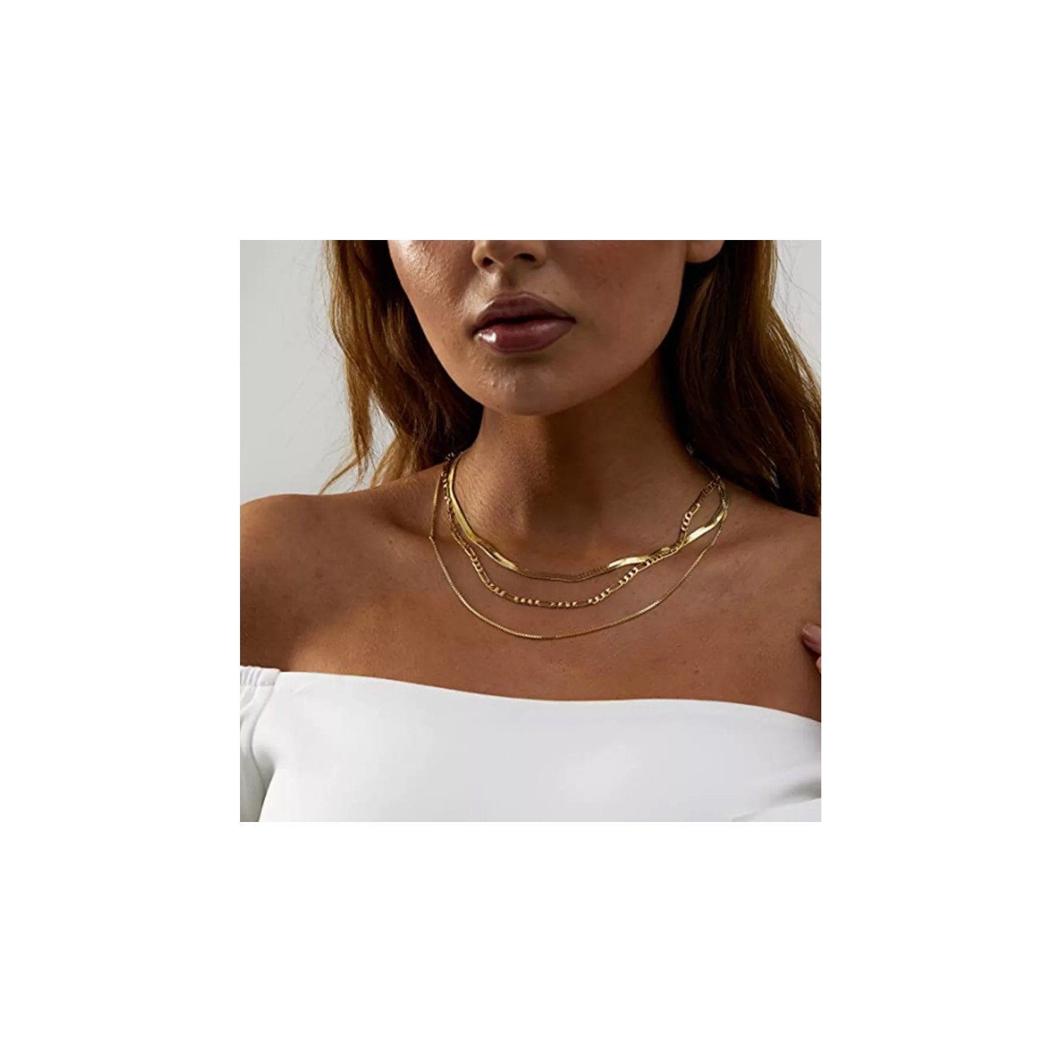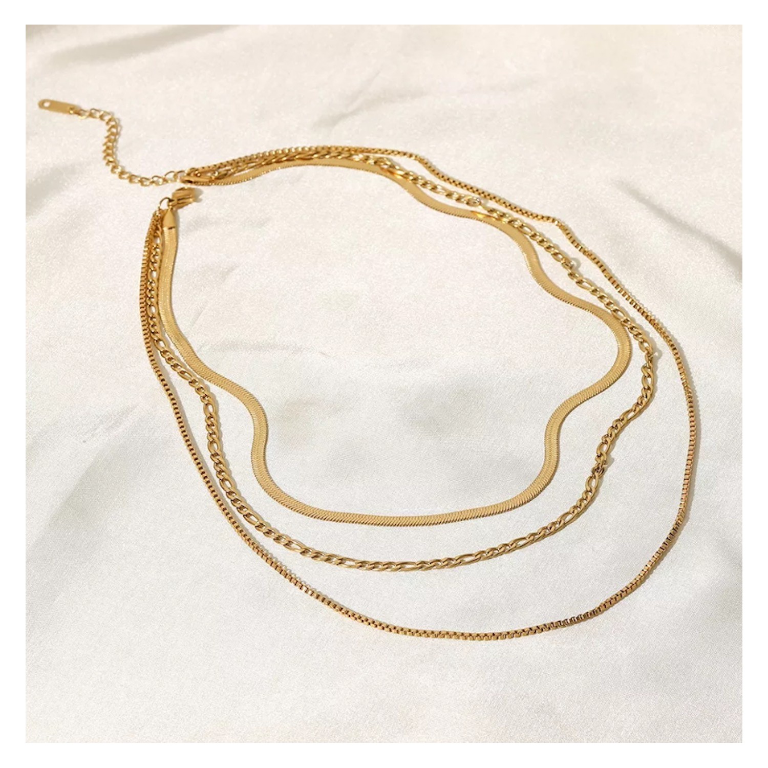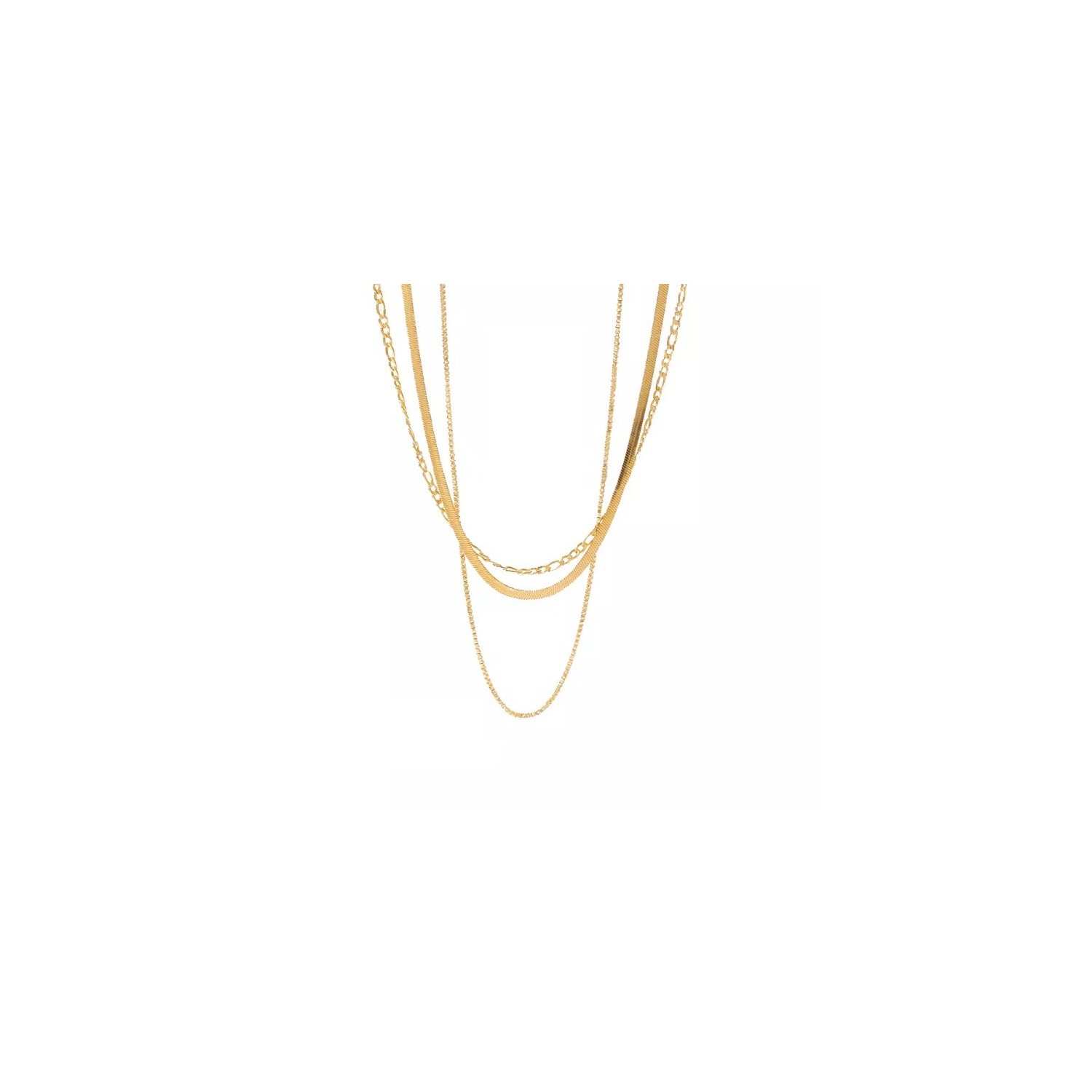 Women's Gold Necklace with 3 Steel Chains Venetian Figaro Fishbone Spike