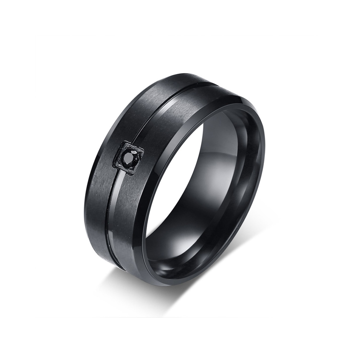 Black Steel Ring Unisex Band with Zirconia