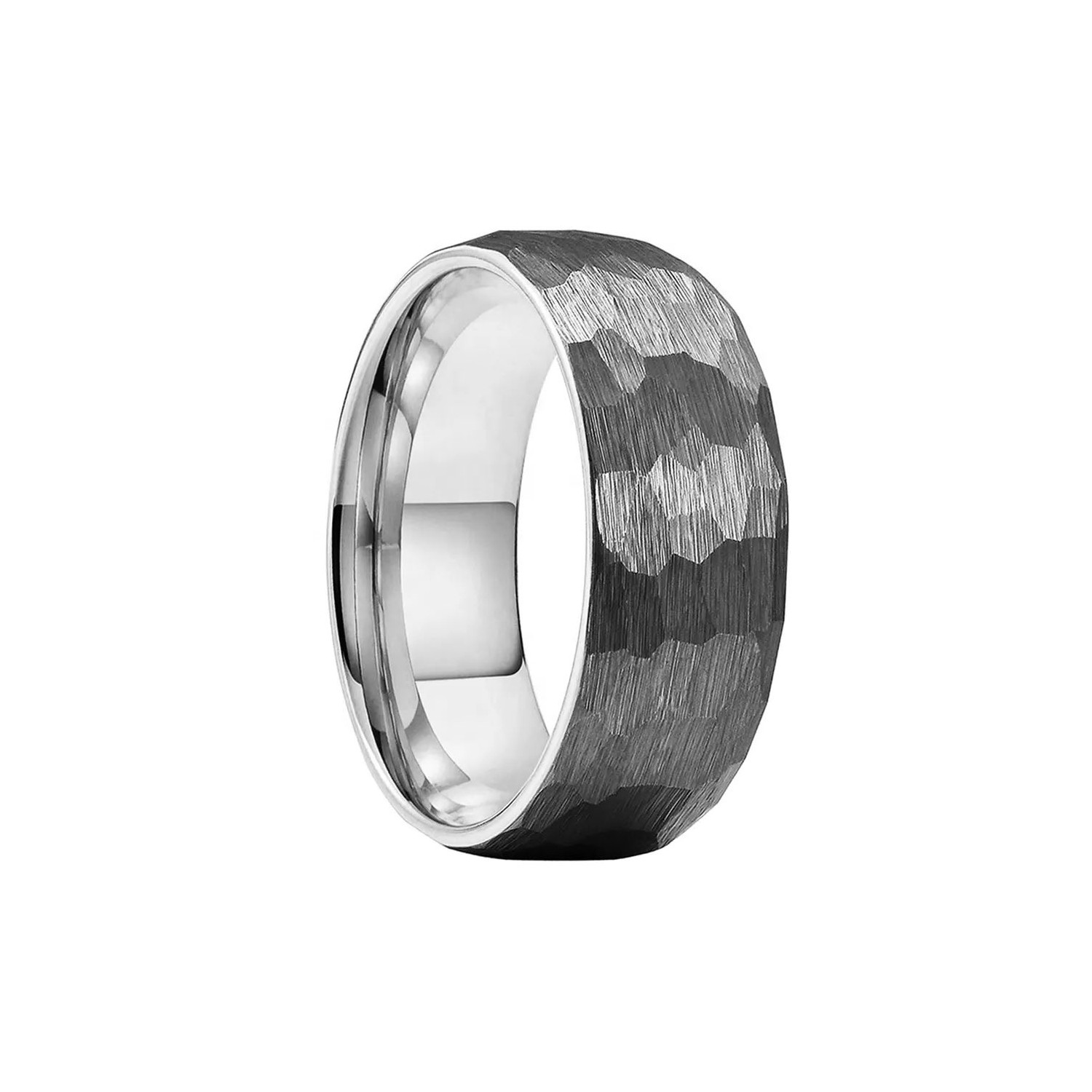 8 mm Hammered Silver Tungsten Ring Band Men Women