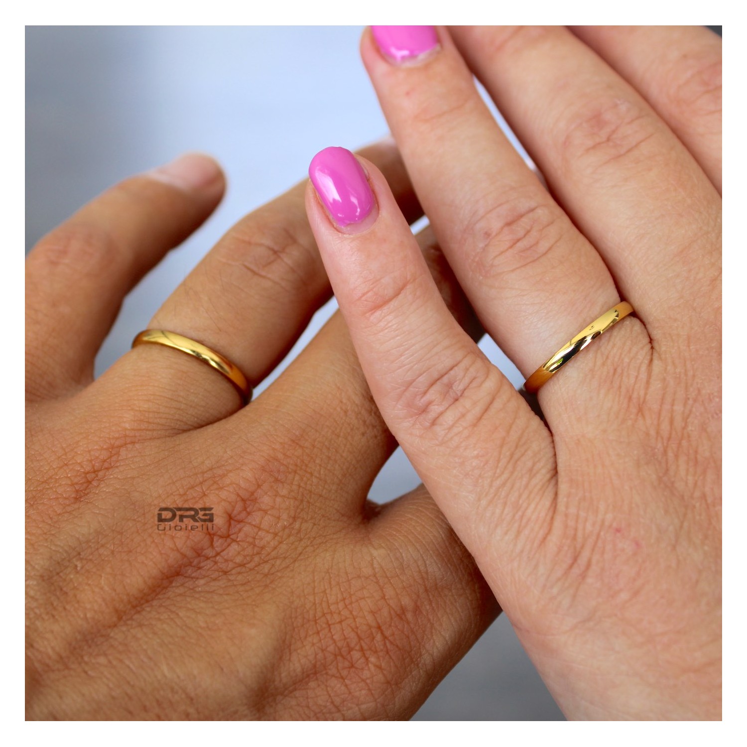 • Pair of rings in stainless steel, gold color, thickness 2 mm, simple, timeless, suitable for any type of outfit