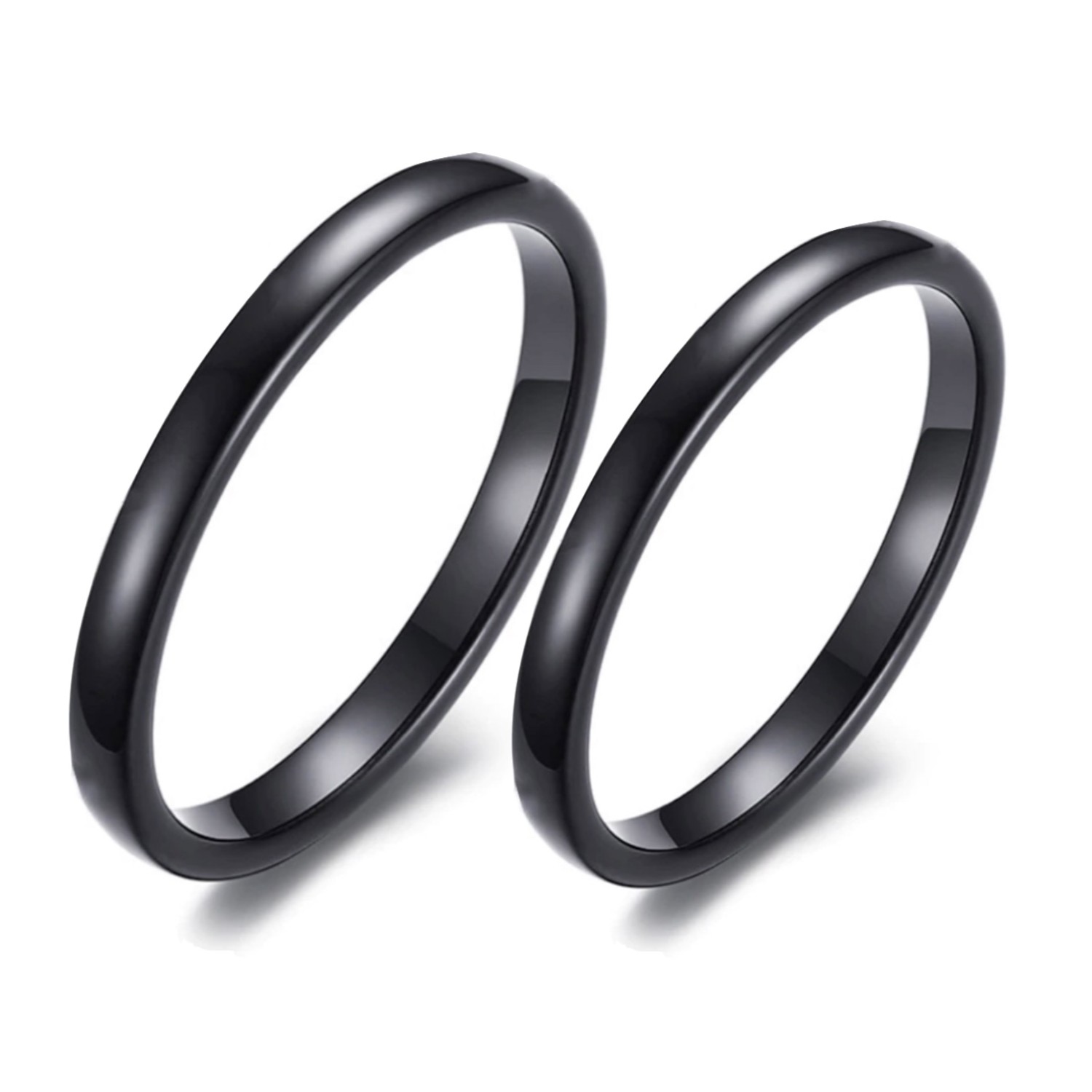Couple Wedding Bands Engagement Rings 2mm Black Thin Steel Men Women Couple Engravings