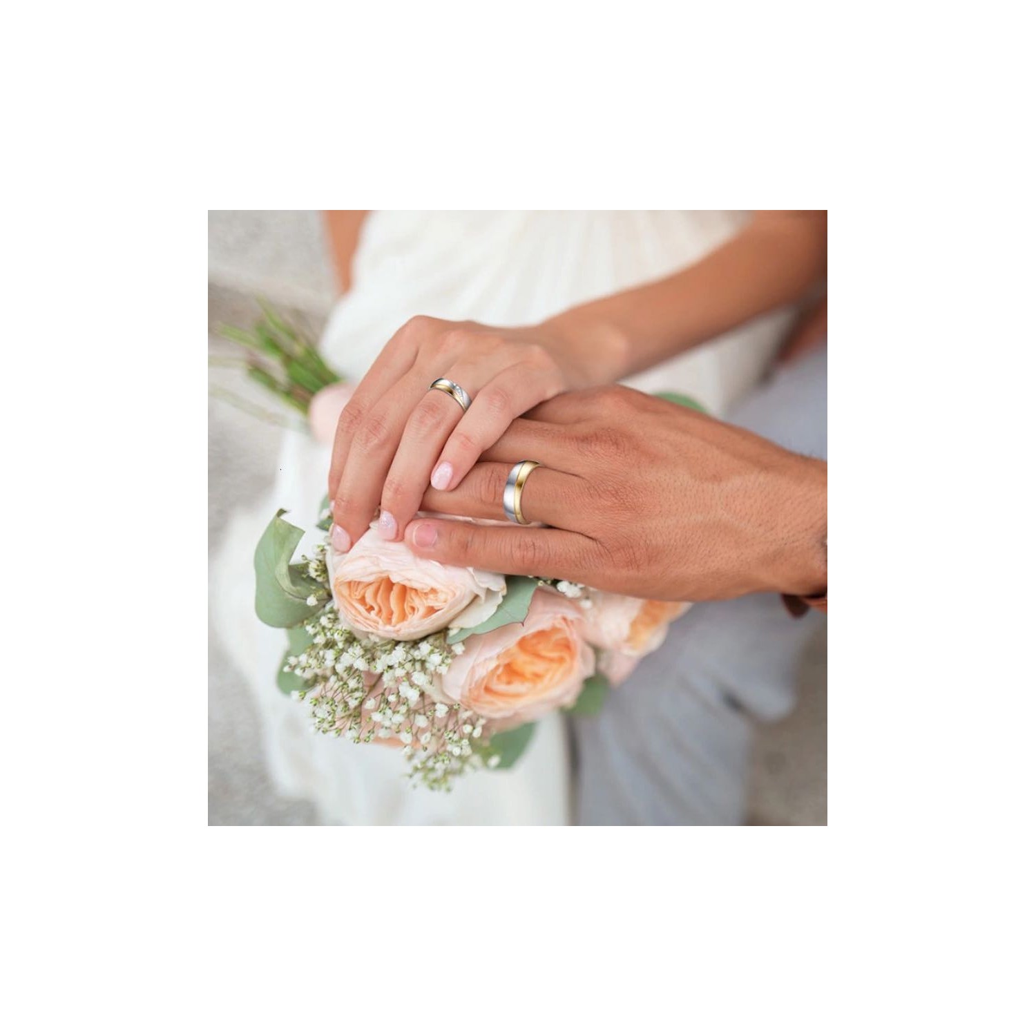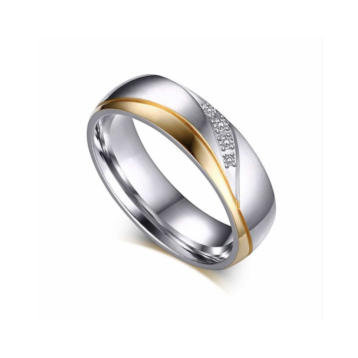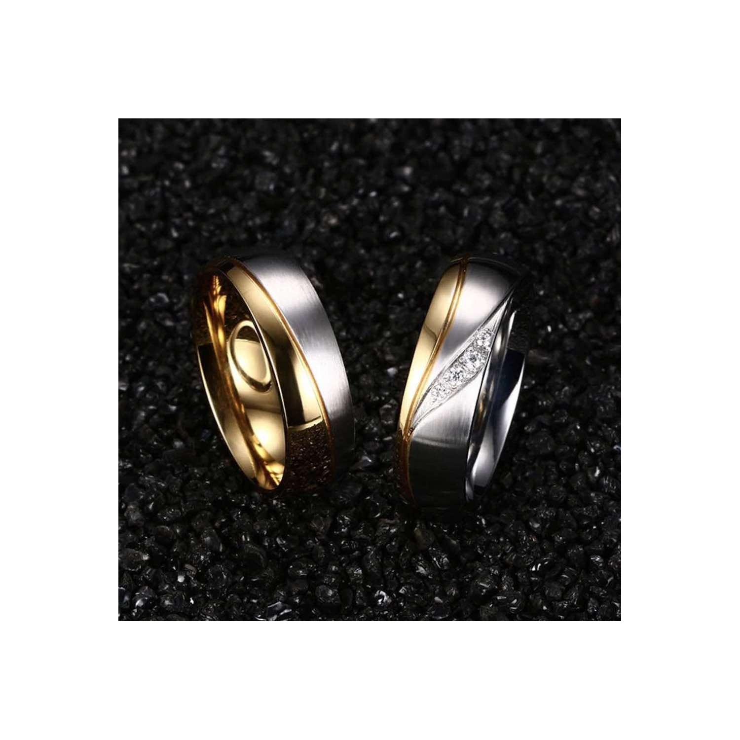Couple of Stainless Steel Rings Engraved Satin Finish Gold and Silver