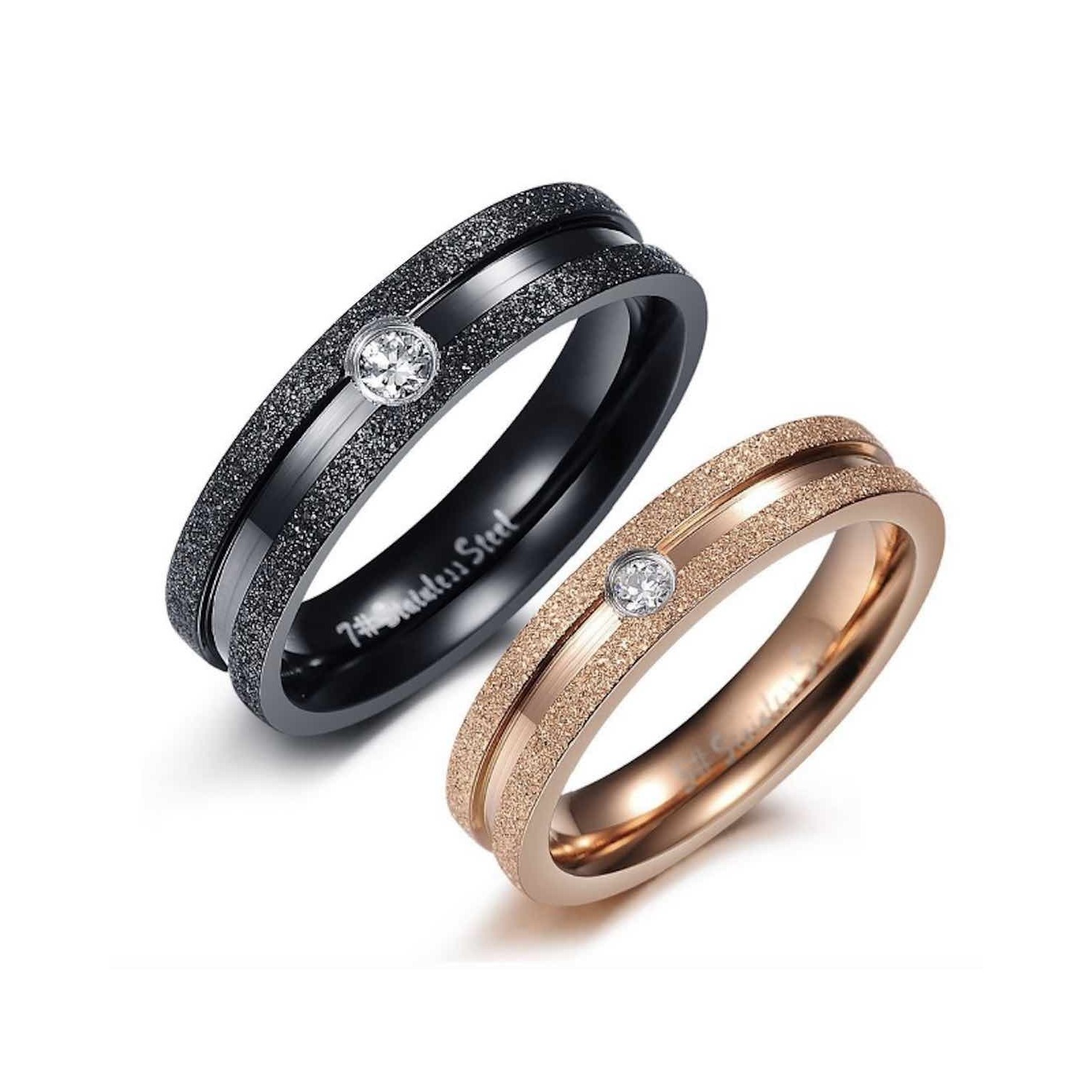 • Couple of Engagement Rings in Rose Gold for Her and Black for Him. The ideal engagement gift.