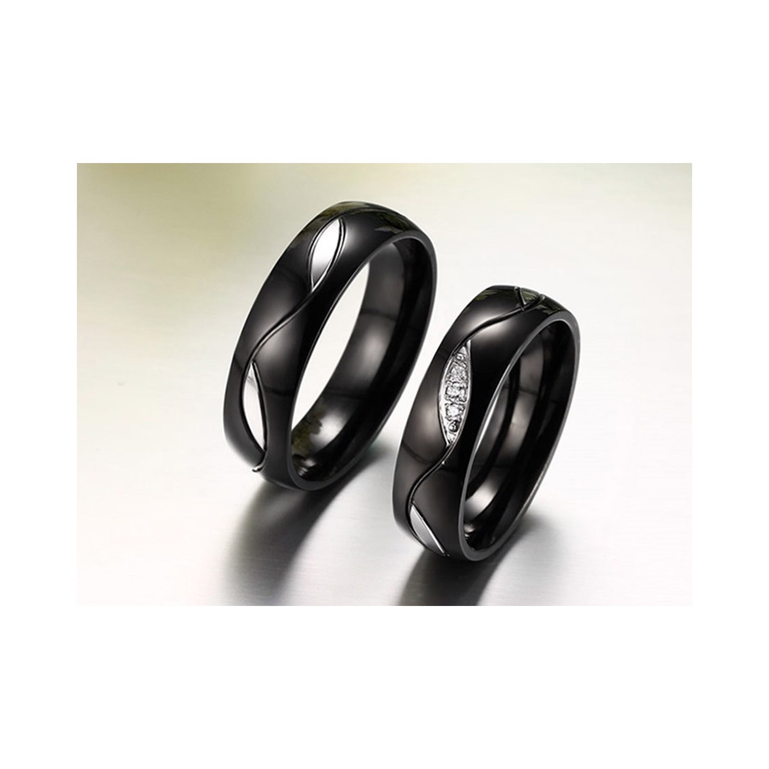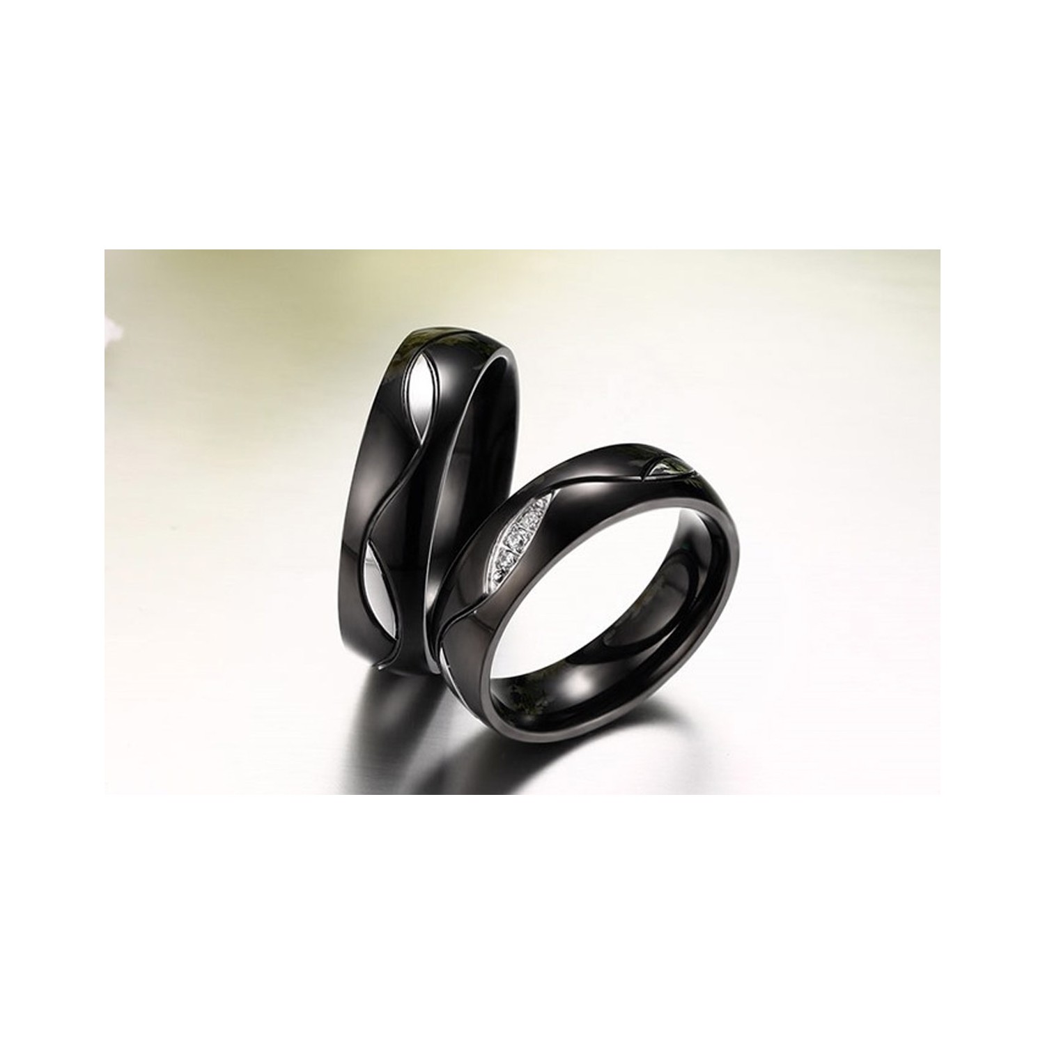 • Pair of stainless steel rings with a band and inset cubic zirconia stone