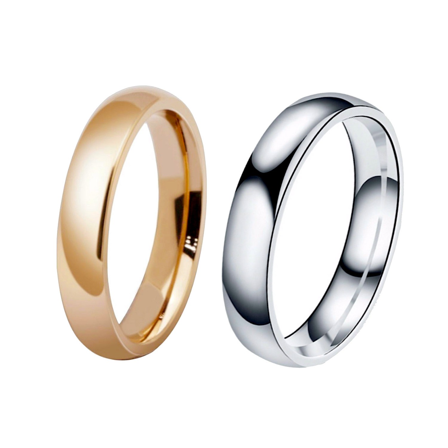 Classic 4mm Silver Rose Gold Couple Engagement Rings