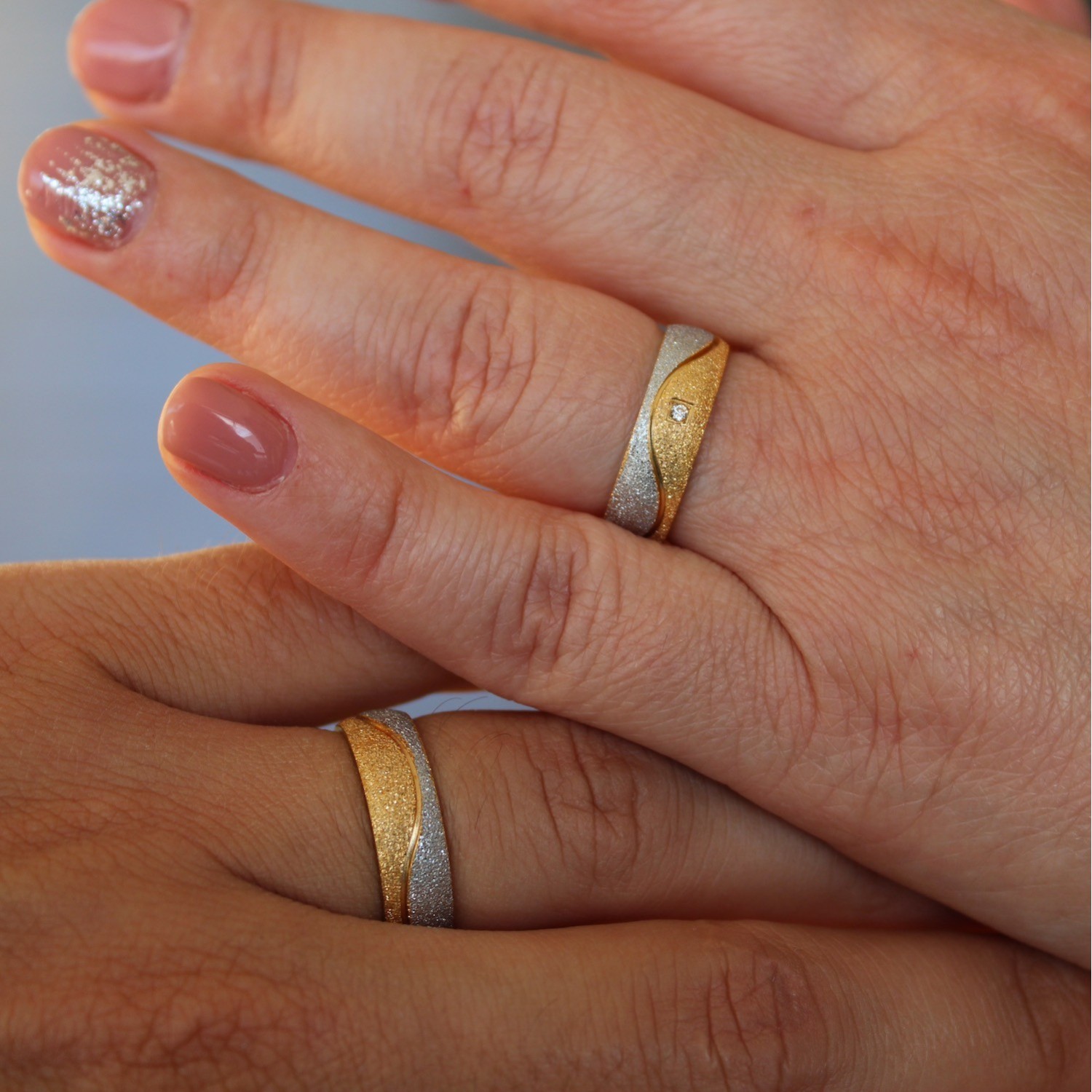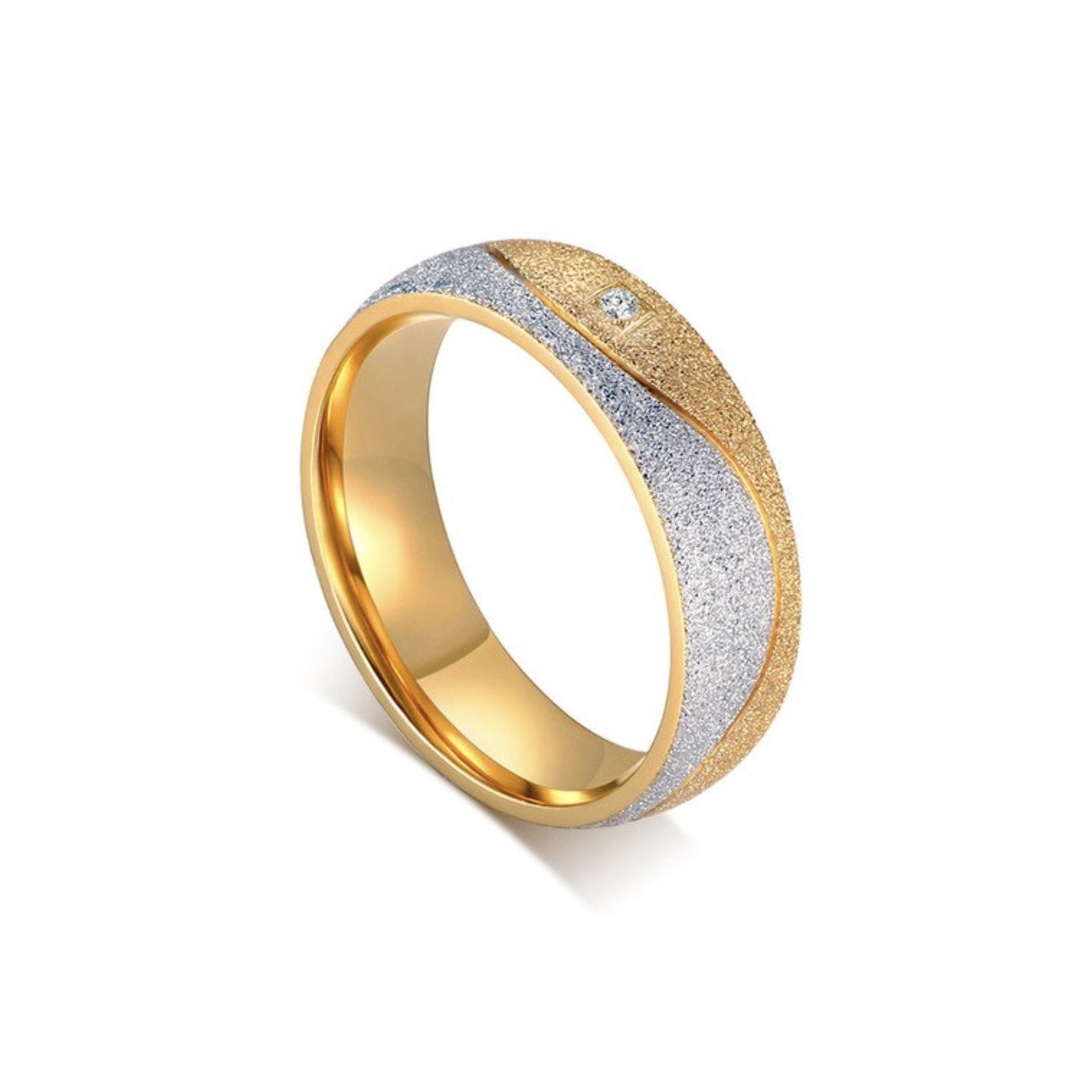 Couple Rings Steel and Gold Bands for Him and Her with Zirconia