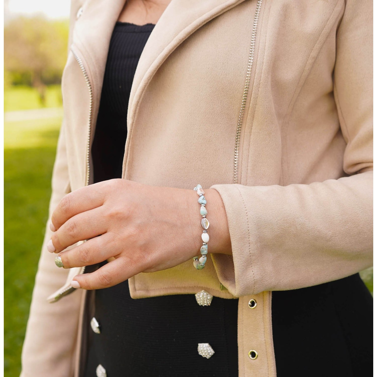 Bracelet made of Larimar stones, Hematite, and 925% Silver.