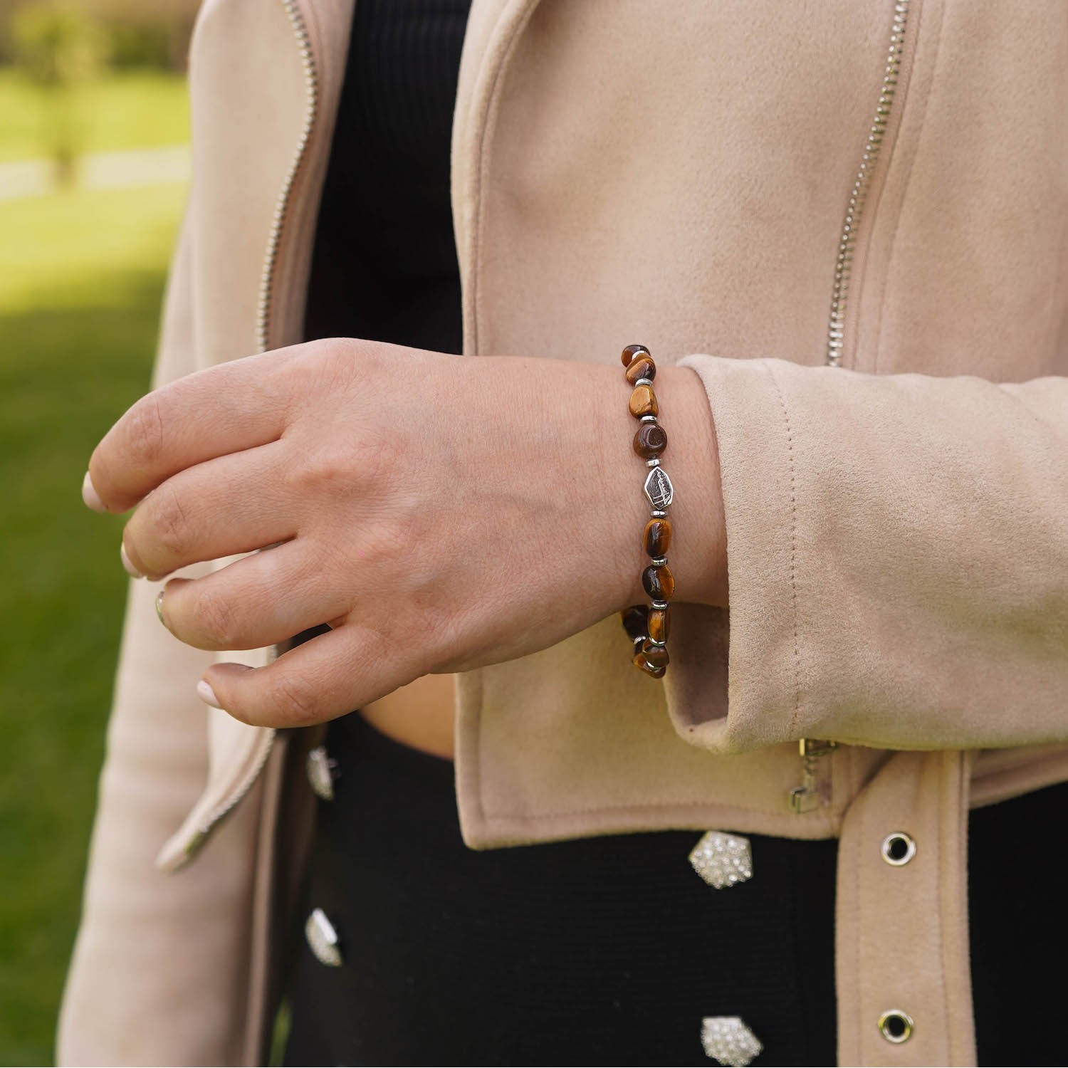 Men Women Bracelet with Tiger Eye Semi-Precious Stones Irregular Stone and 925 Silver