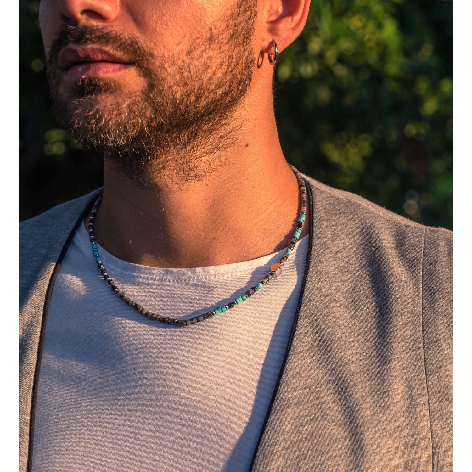 Heishi Stone Bracelet Labradorite, Black Agate, Turquoise, and 925% Silver