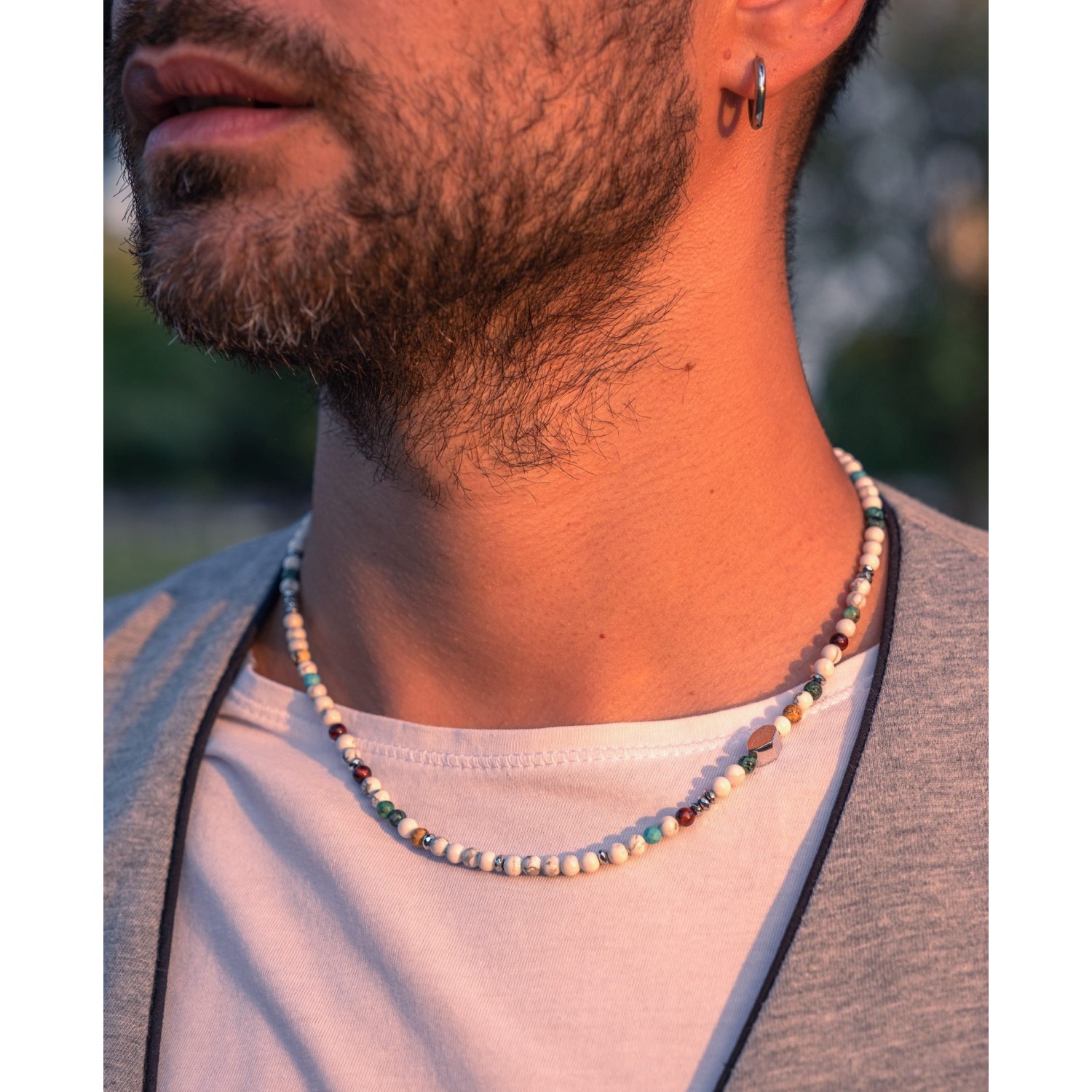 Natural Stone Necklace, Turquoise, Aulite, Jasper, Tiger's Eye, and 925% Silver