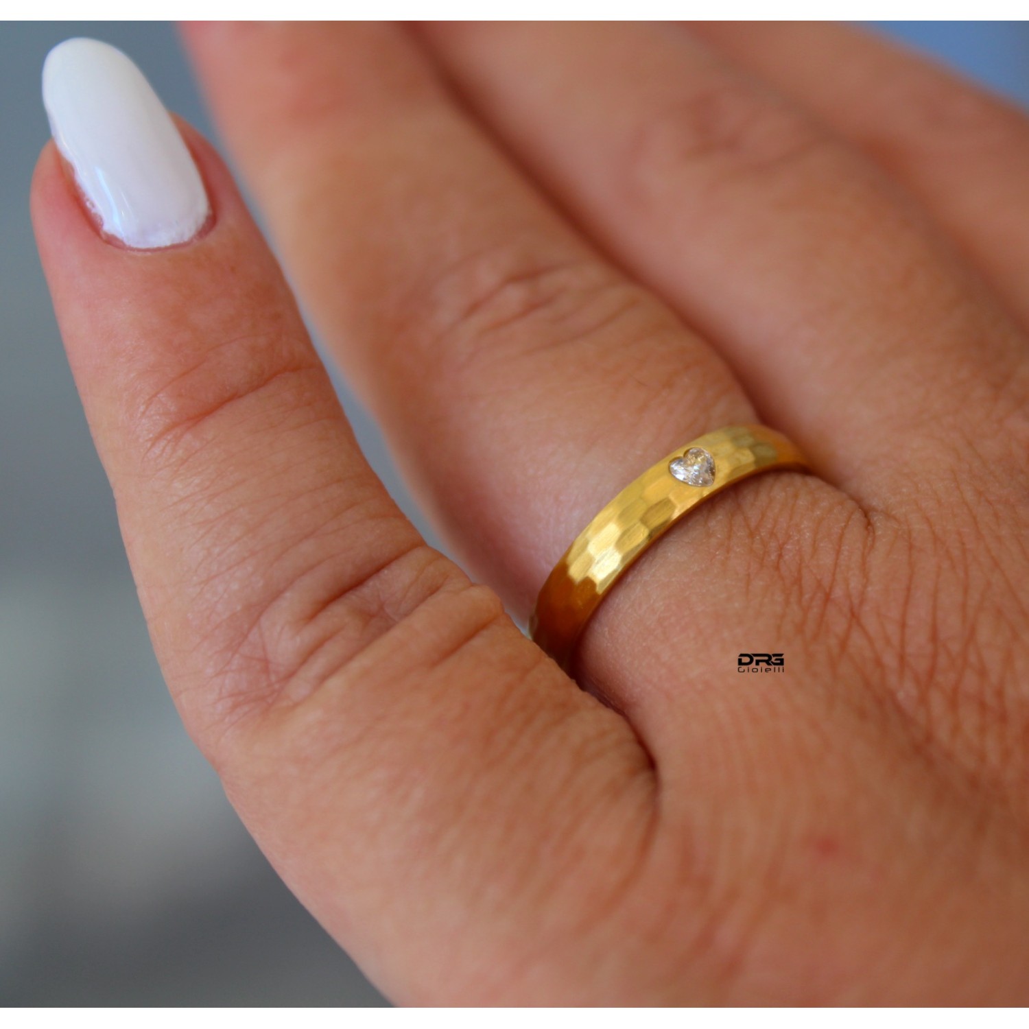 Fedine Fidanzamento Fedi Nuziali Oro martellate Cuore Solitario 4 mm